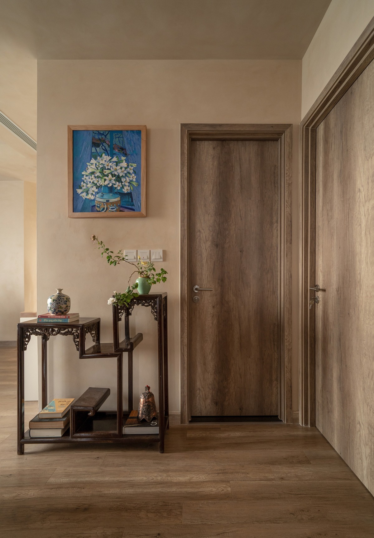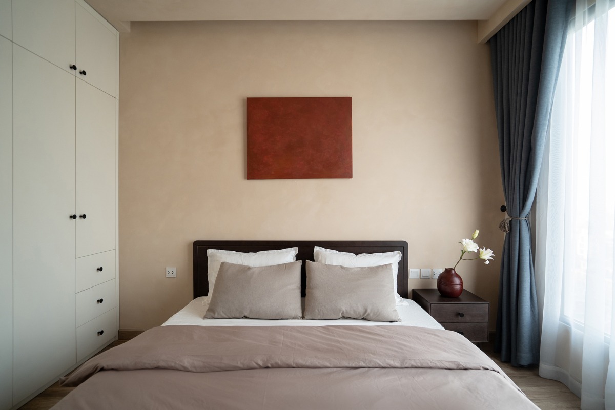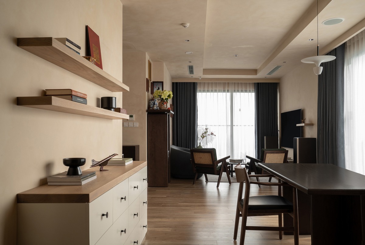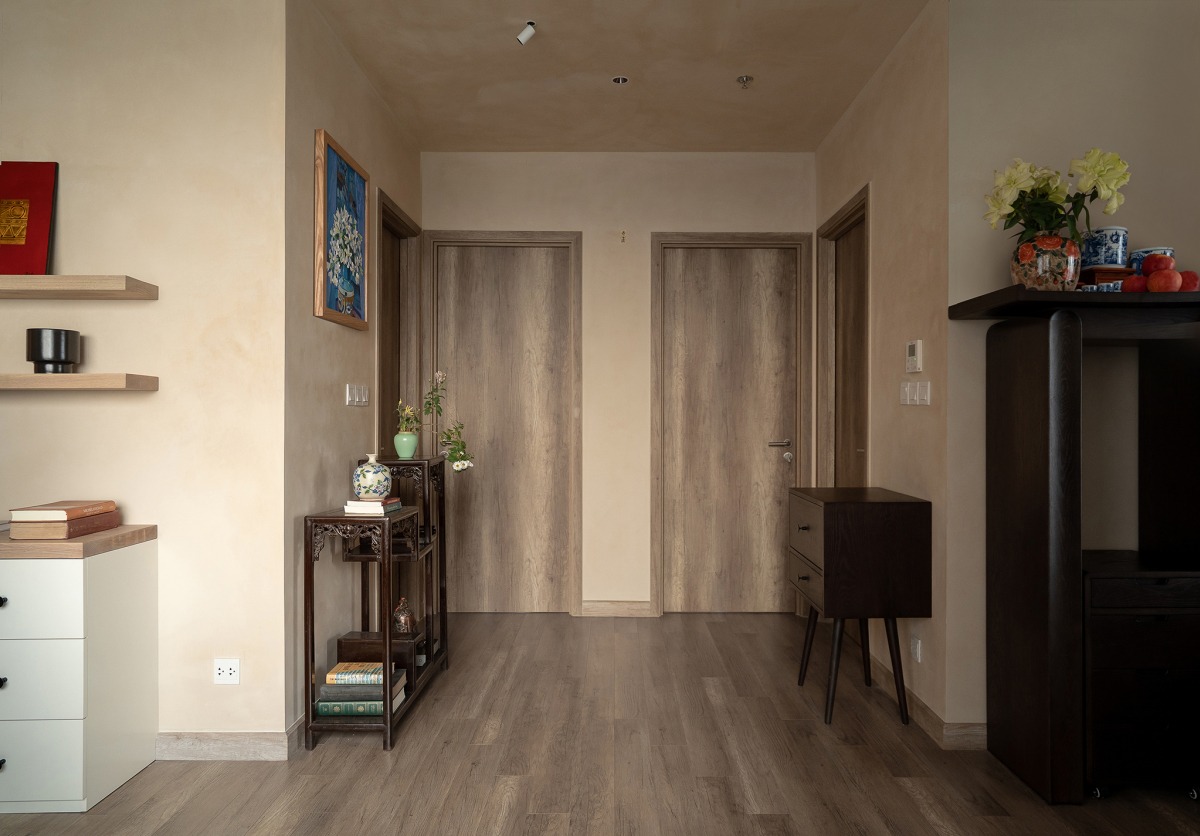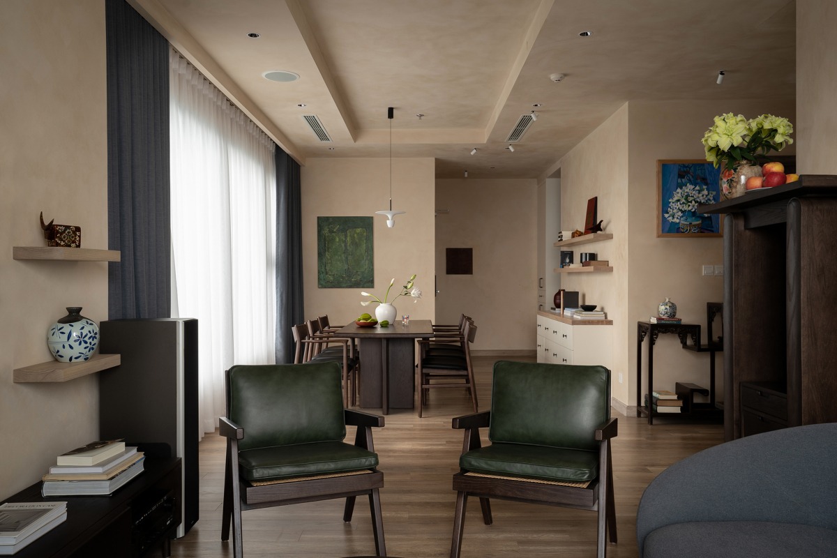 Chủ nhân căn hộ đã sống nhiều năm ở nước ngoài, mong muốn tạo ra không gian đậm đà bản sắc Việt nhưng vẫn đáp ứng được nhu cầu sống hiện đại, tiện dụng và sang trọng. Vì vậy, nhóm thiết kế lựa chọn phong cách tối giản làm nền tảng, lồng ghép các yếu tố đặc trưng của làng quê Việt và sử dụng vật liệu tự nhiên để mang lại chiều sâu, sự ấm cúng. Từng không gian được kết nối hài hòa giữa các yếu tố hiện đại và truyền thống, tạo nên cảm giác vừa thân thuộc vừa đương đại.