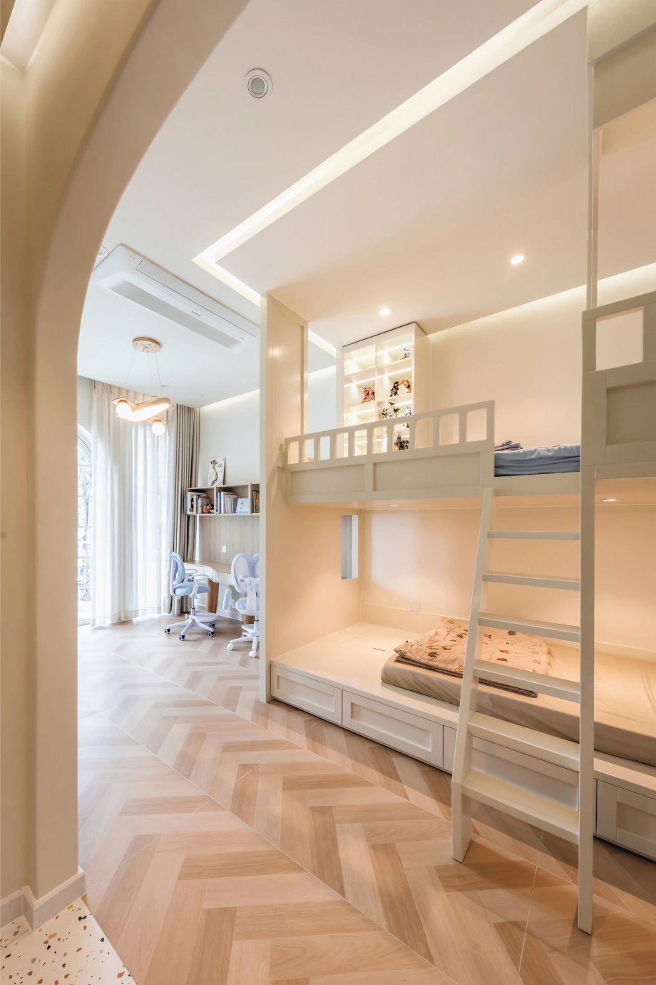 Đặc biệt, sự khéo léo trong việc bố trí không gian không chỉ bảo đảm tính thẩm mỹ mà còn tối ưu hóa công năng sử dụng. Mỗi căn phòng đều được thiết kế với sự chú ý đến từng chi tiết, tạo ra một tổng thể vừa sang trọng vừa gần gũi.