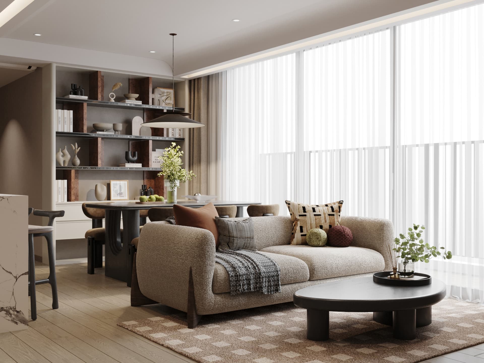 Những đường cong (curved lines) không chỉ là chi tiết trang trí, mà trở thành mạch dẫn cảm xúc—uốn lượn qua vòm cửa, ôm trọn bộ sofa hay lướt nhẹ trên những thiết kế đèn trần phá cách, biến cả căn phòng thành một tác phẩm điêu khắc liền mạch. Tại đây, ranh giới vật liệu bị xóa nhòa để nhường chỗ cho những cuộc đối thoại đầy kịch tính: vẻ lạnh lùng, sắc sảo của kim loại Chrome và kính trong suốt lại có thể "khiêu vũ" đầy tình tứ bên cạnh sự ấm áp, nồng nàn của gỗ mộc hay nhung mịn. Contemporary chính là bản tuyên ngôn cho những tâm hồn yêu tự do, nơi mỗi góc nhìn không bị đóng khung mà mở ra những trải nghiệm thị giác đa chiều, phóng khoáng và đậm chất nghệ thuật.