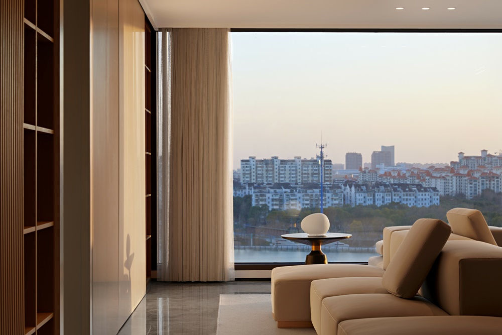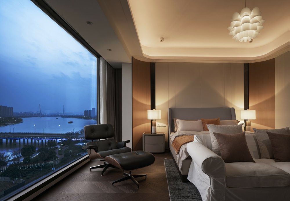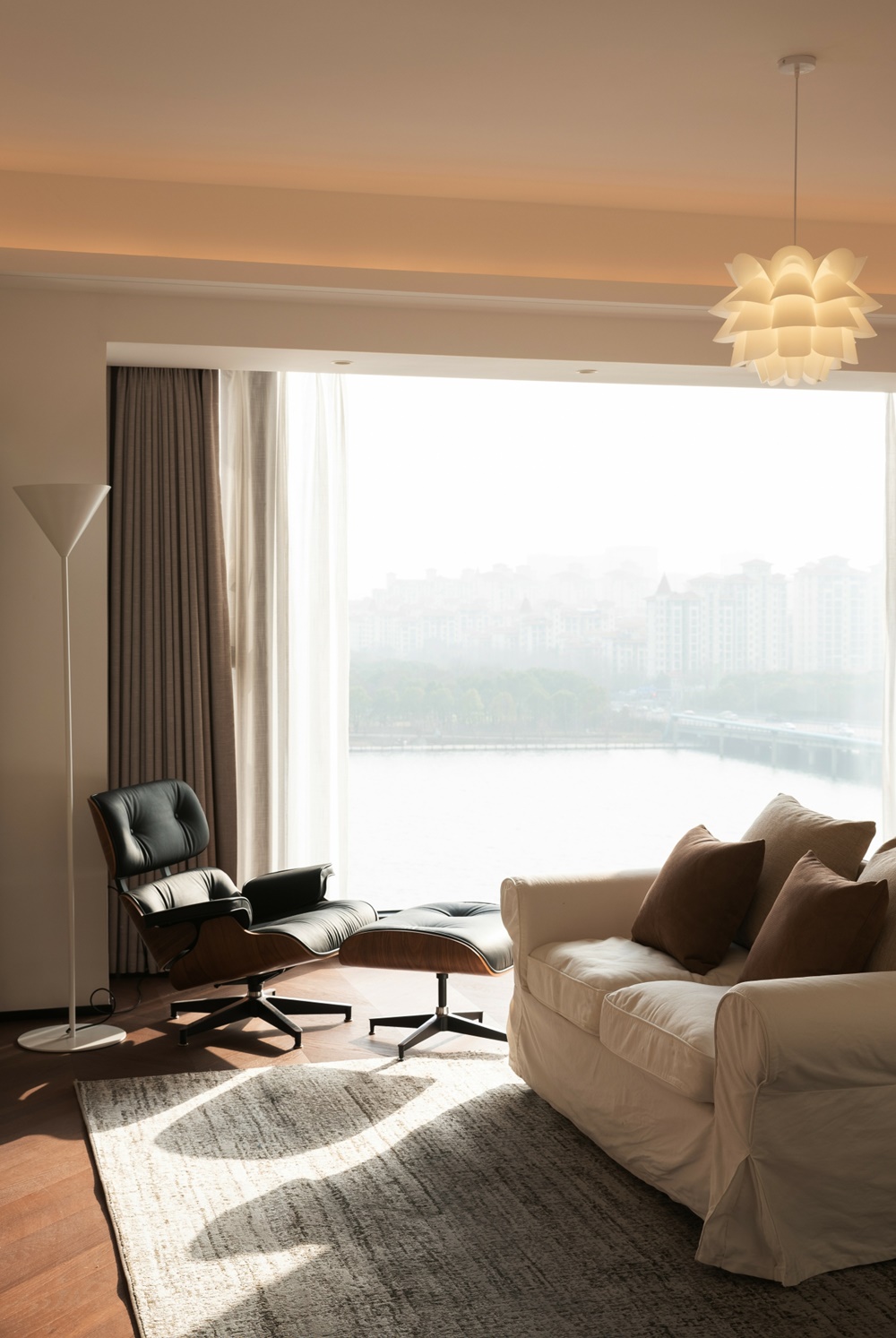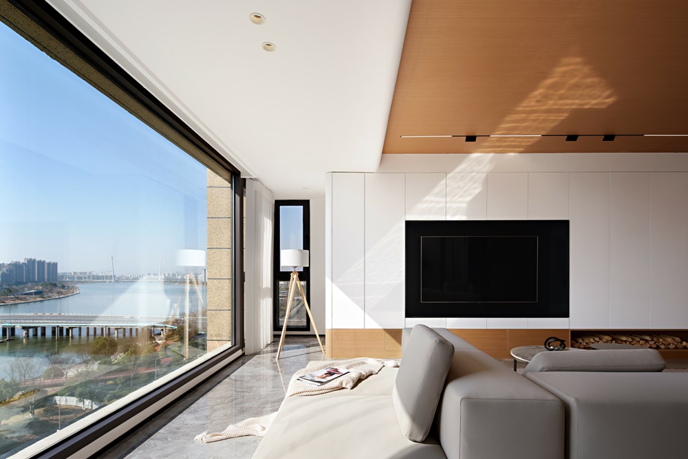 Điểm đắt giá nhất của căn hộ chính là vị thế độc tôn bên bờ sông, và thiết kế đã khai thác triệt để ưu thế này: