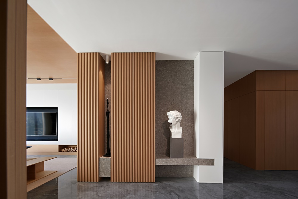 Cân bằng thị giác: Những đường nét kiến trúc gãy gọn, mạnh mẽ được làm mềm đi bởi các bề mặt vật liệu tự nhiên. Sự kết hợp này tạo nên một ngôn ngữ thiết kế chung, nơi sự hiện đại gặp gỡ nét dịu dàng, tạo ra một không gian sống đầy tính thuyết phục.