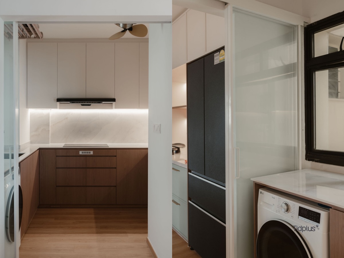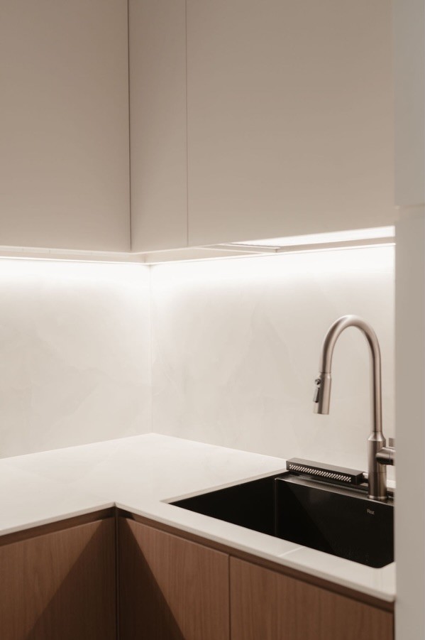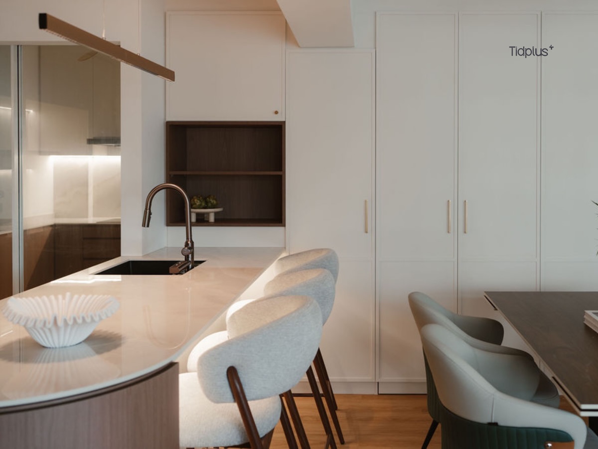 Ba chiếc bồn rửa trong cùng một không gian bếp – thoạt nghe có vẻ thừa thãi, nhưng thực chất lại là một bài toán quy hoạch công năng đầy sắc sảo. Tại đây, mỗi vị trí đều được tính toán kỹ lưỡng để phục vụ một “kịch bản” sống cụ thể, biến ngôi nhà thành một cỗ máy vận hành trơn tru phục vụ gia chủ.