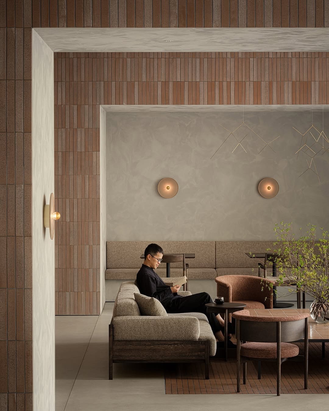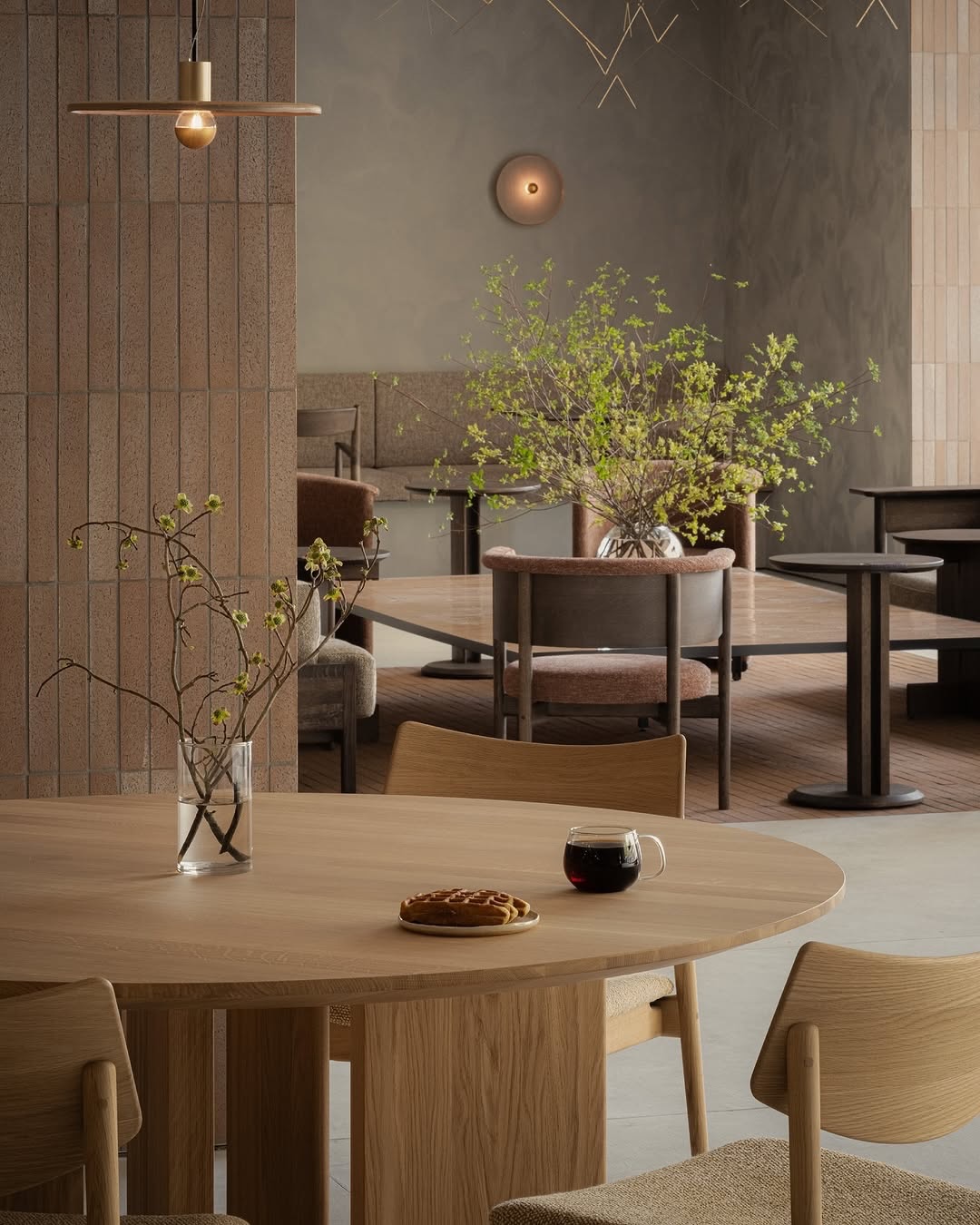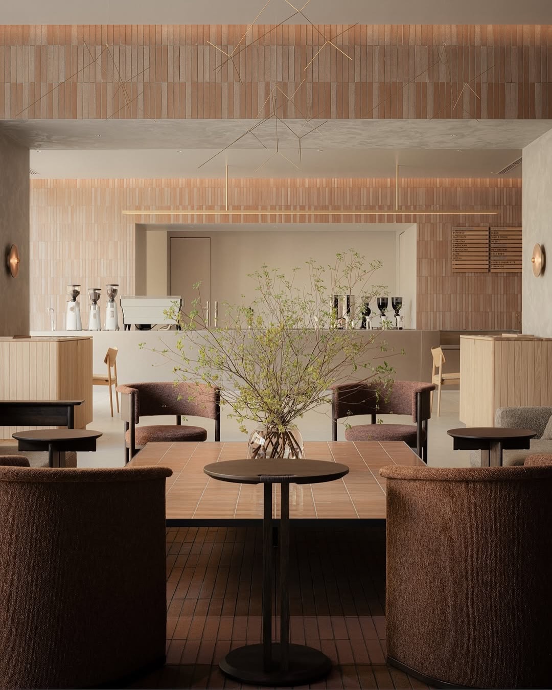 Sự ấm cúng: Các lớp chất liệu và kịch bản ánh sáng vàng dịu giúp mỗi góc nhỏ đều trở thành một không gian thư giãn lý tưởng để thưởng thức những loại bánh ngọt theo mùa (seasonal pastries).
