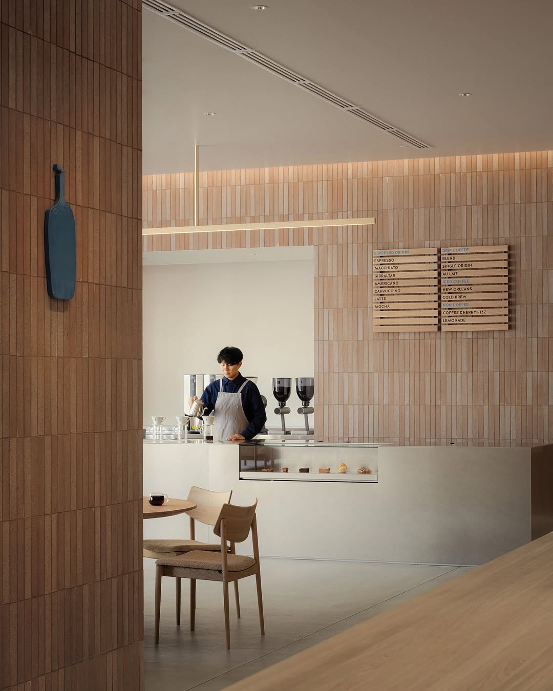 Tại trung tâm của không gian, các quy trình pha chế Espresso và cà phê thủ công (hand-drip) được thực hiện một cách chuyên nghiệp. Bố cục của quán được tính toán để đạt đến sự cân bằng hoàn hảo giữa tính minh bạch (clarity) và sự ấm cúng (warmth):