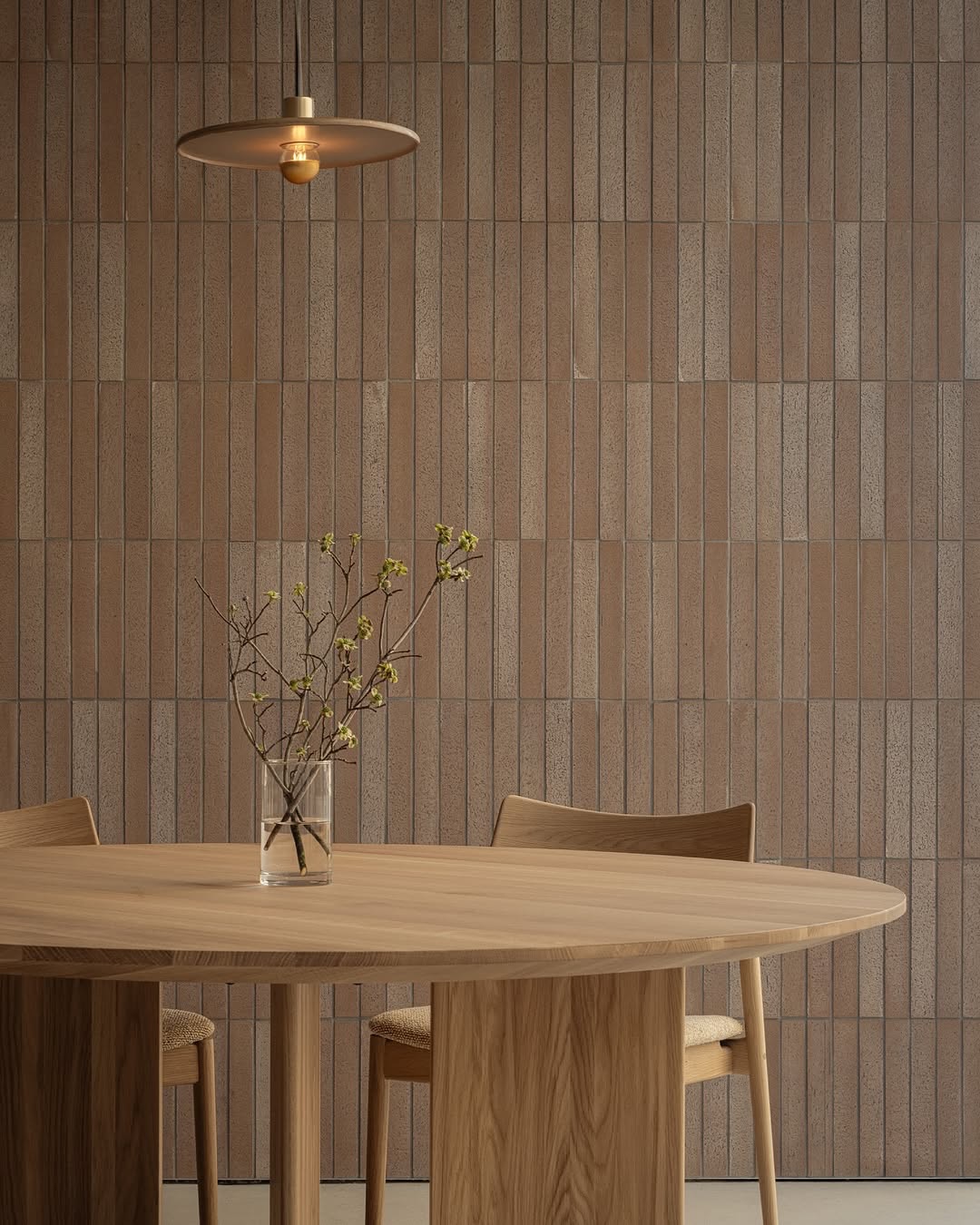 Gạch tông hồng phấn (Blush-toned tiles): Việc sử dụng gạch màu hồng nhạt không chỉ tạo nên một diện mạo mới mẻ, hiện đại mà còn mang lại sự ấm áp, dễ chịu cho nhãn quan khách hàng. Bề mặt vật liệu gốm tạo ra hiệu ứng phản xạ ánh sáng dịu nhẹ, góp phần kiến tạo bầu không khí tĩnh tại.