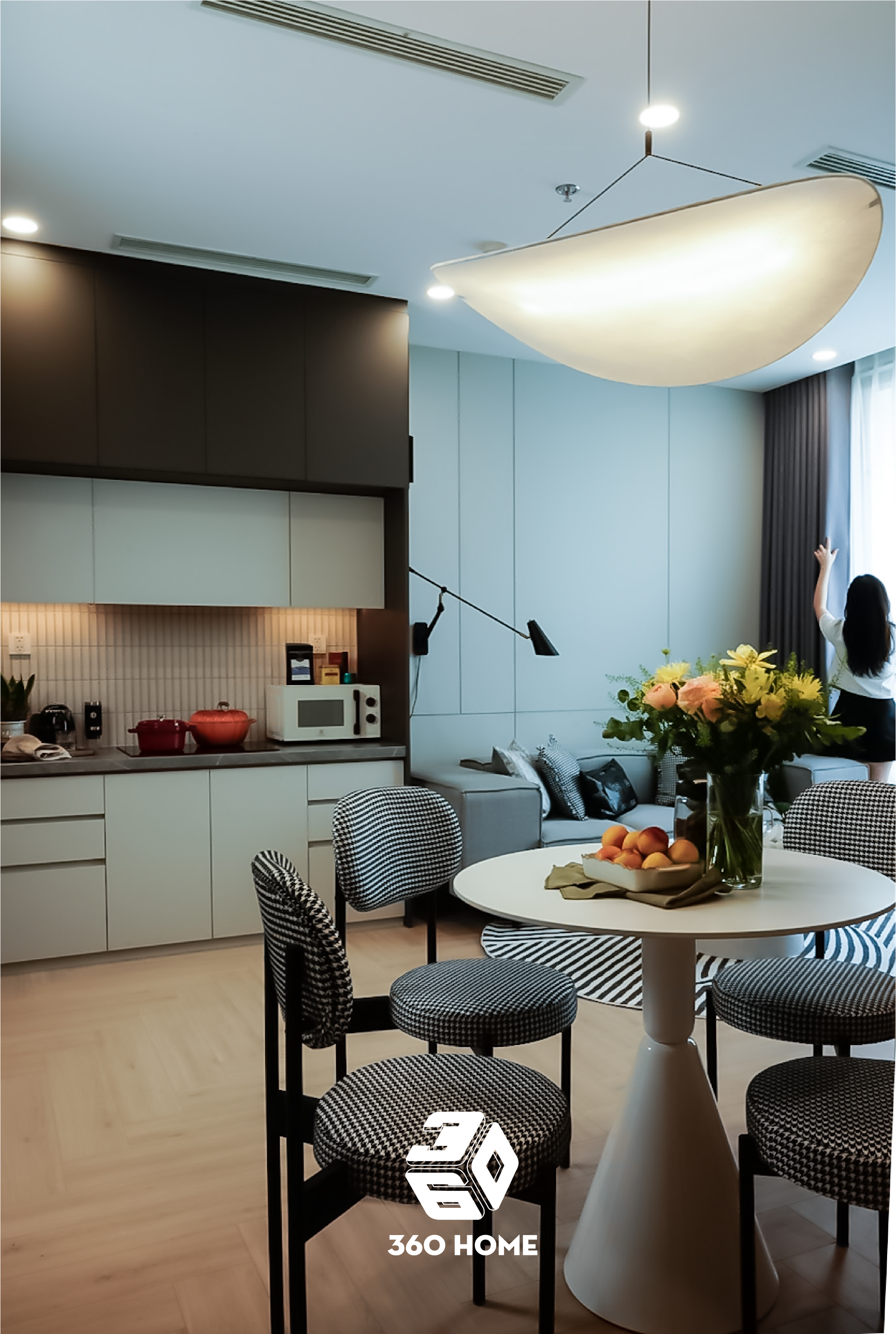 Khu vực bàn ăn tuy nhỏ gọn nhưng cực kỳ ấn tượng, thể hiện gu thẩm mỹ tinh tế của 360 Home: