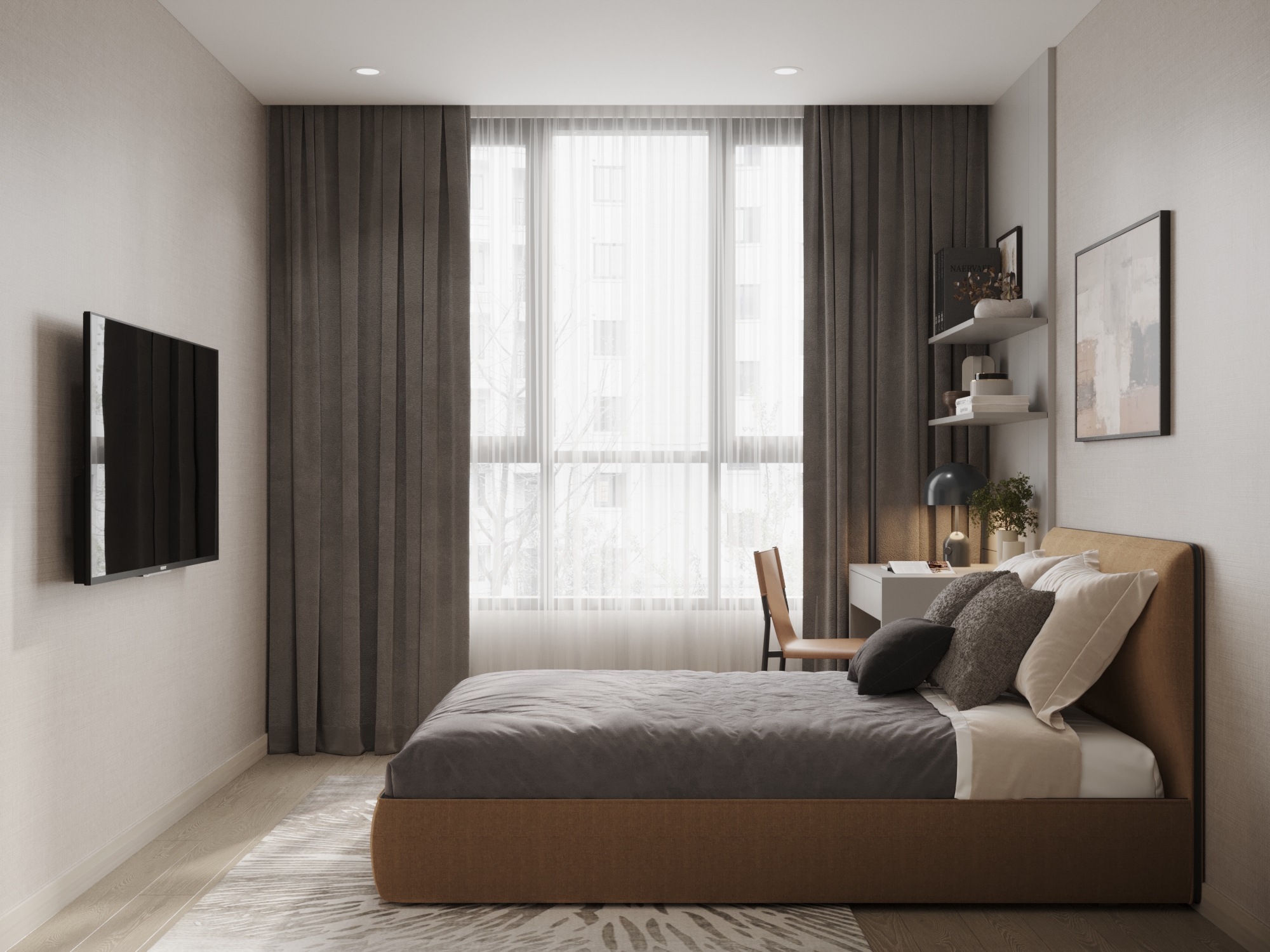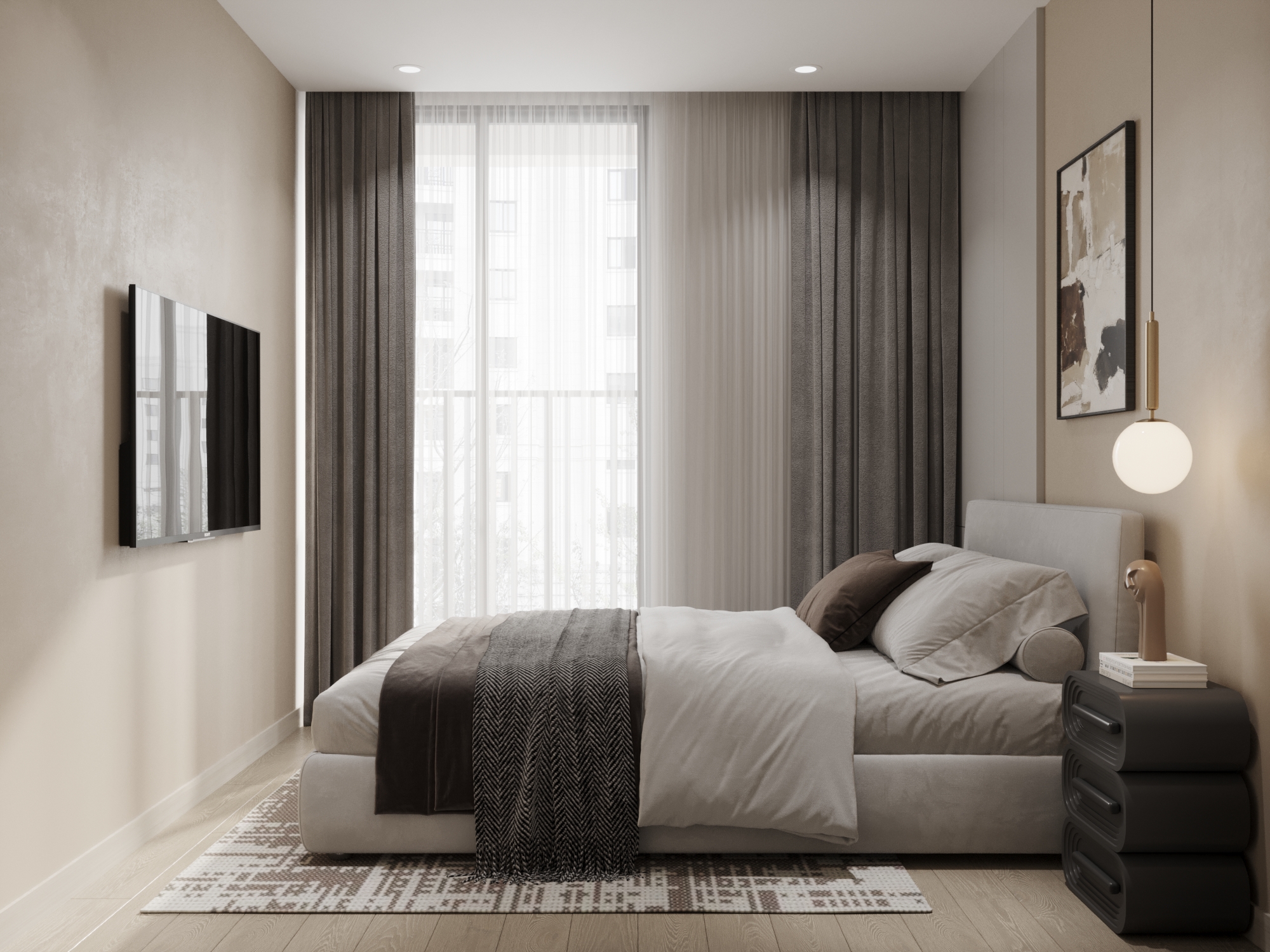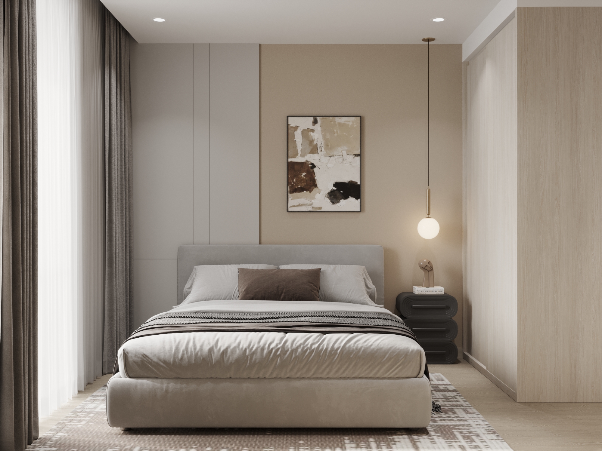 Ngôn ngữ thiết kế tối giản tiếp tục được duy trì tại các phòng ngủ nhưng với sắc thái mềm mại hơn để ưu tiên sự thư giãn.