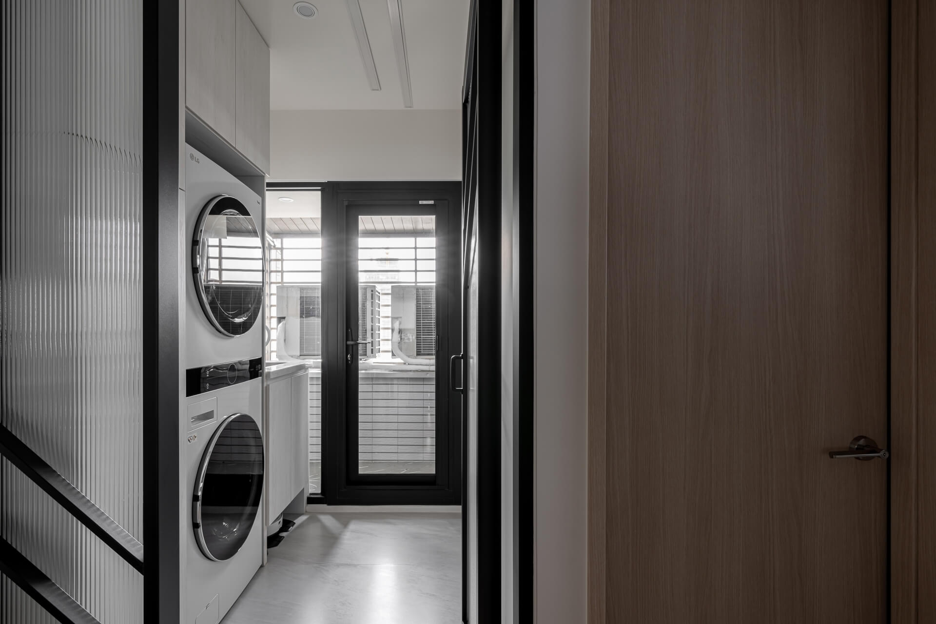 Công năng tích hợp: Nơi đây chứa hệ thống máy giặt sấy chồng tầng, giàn phơi điện thông minh và cửa gió của hệ thống trao đổi nhiệt.