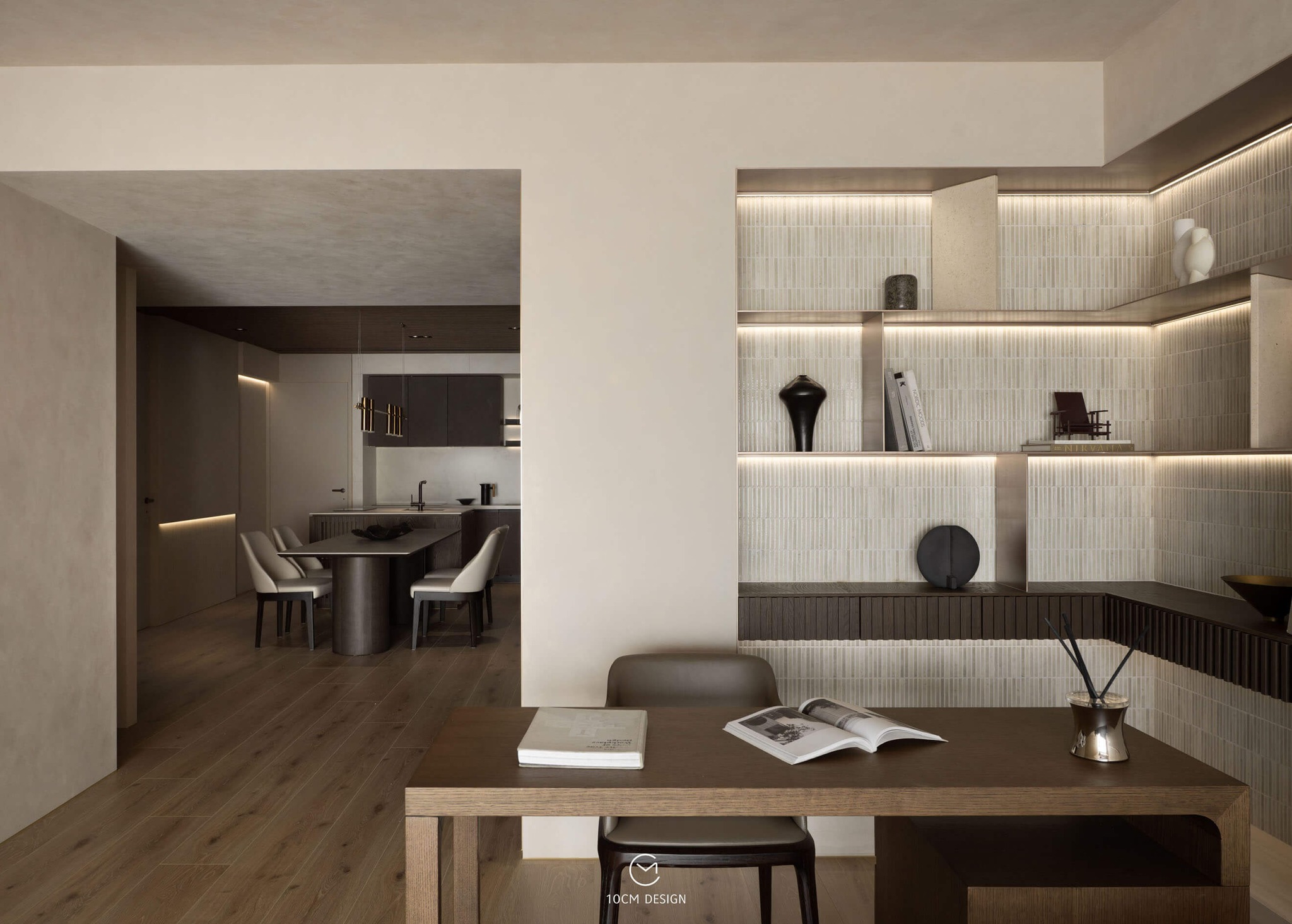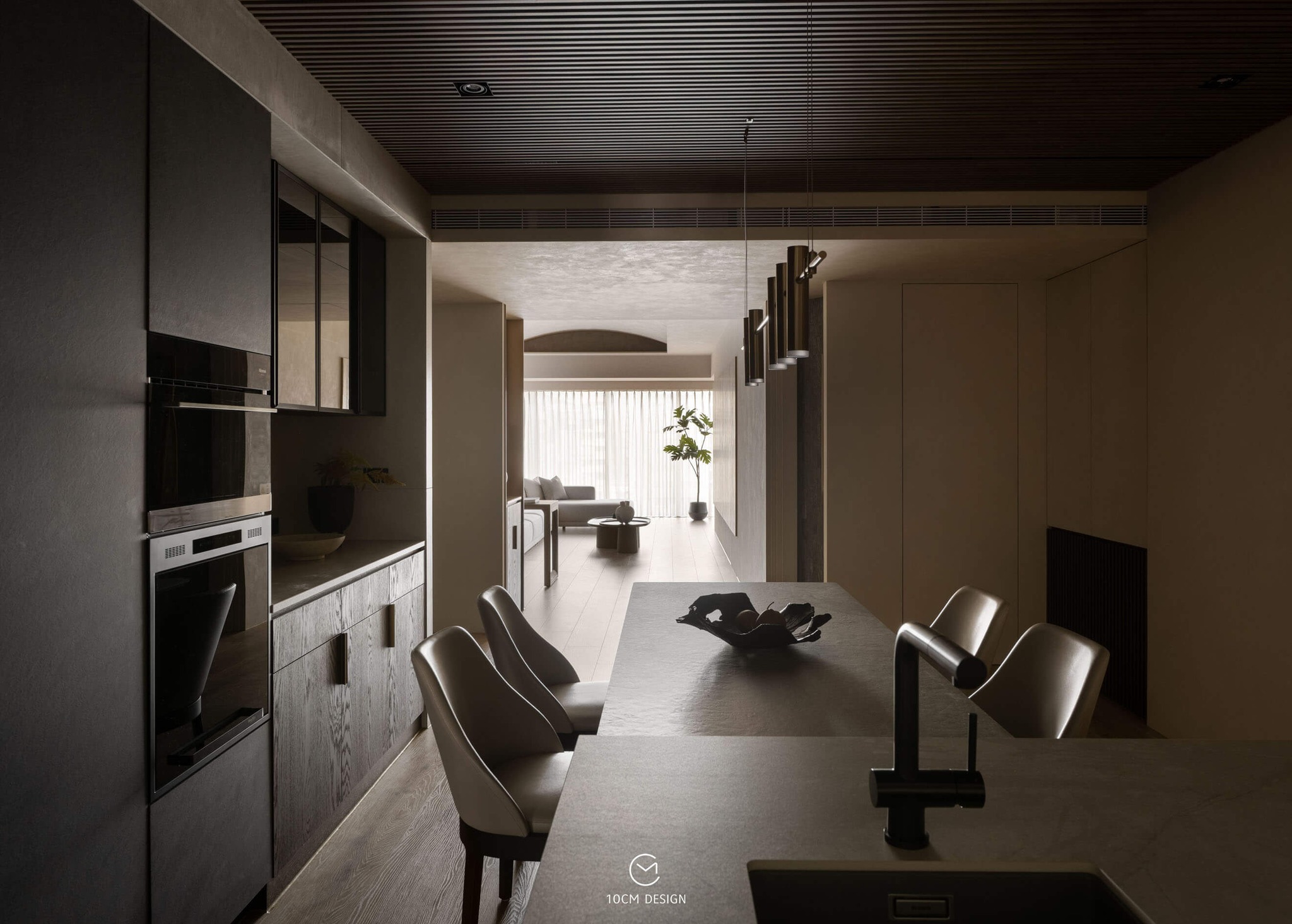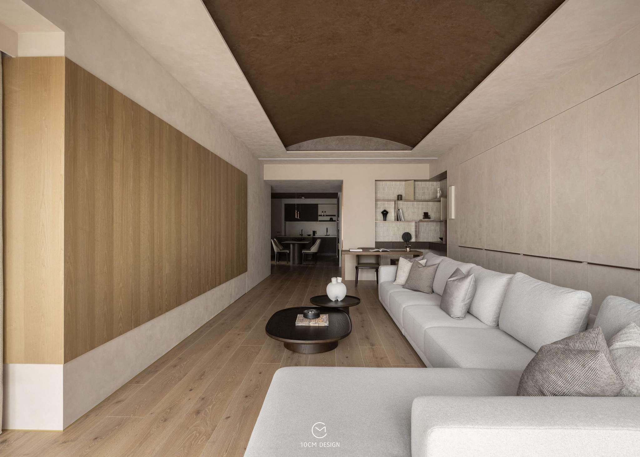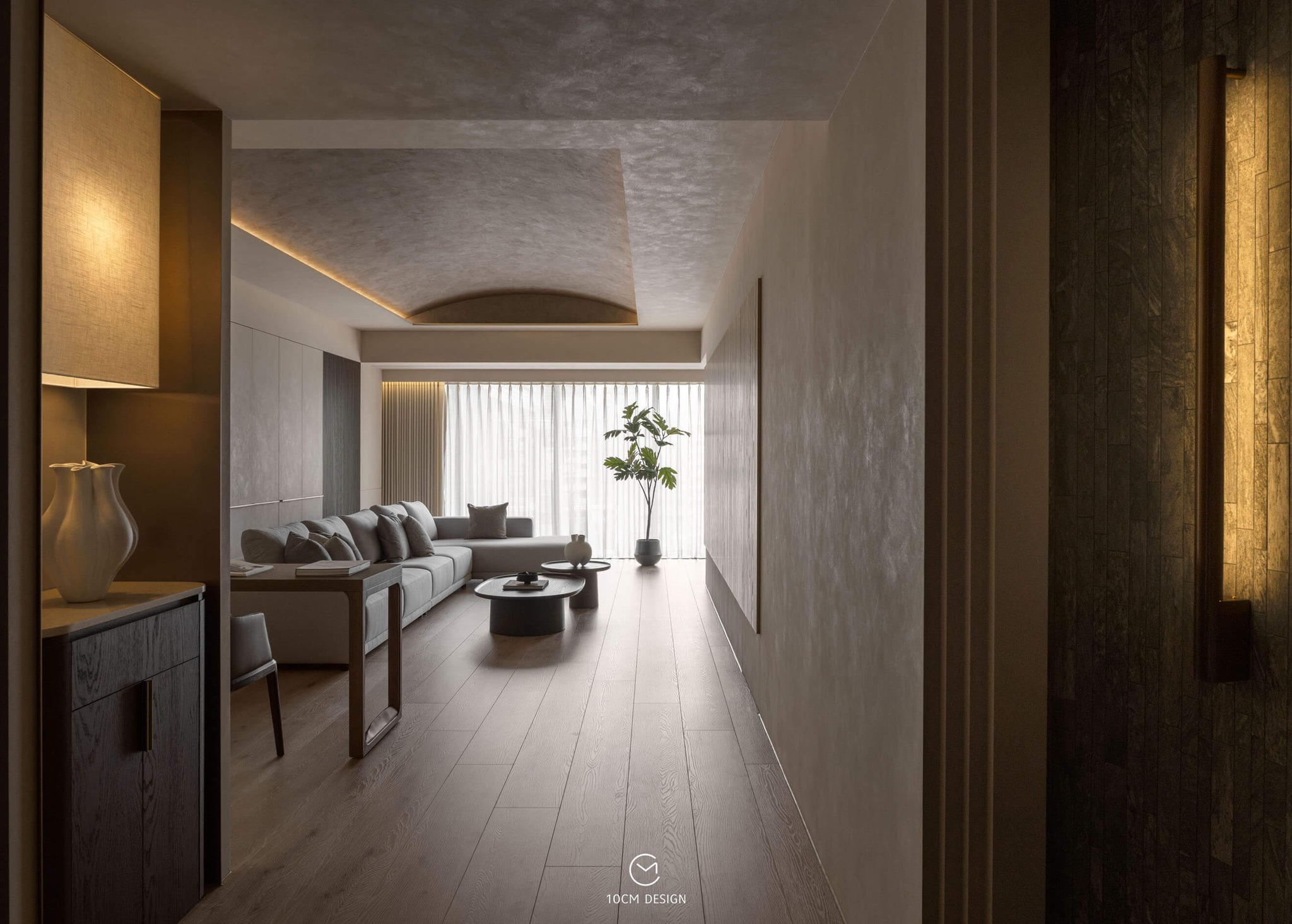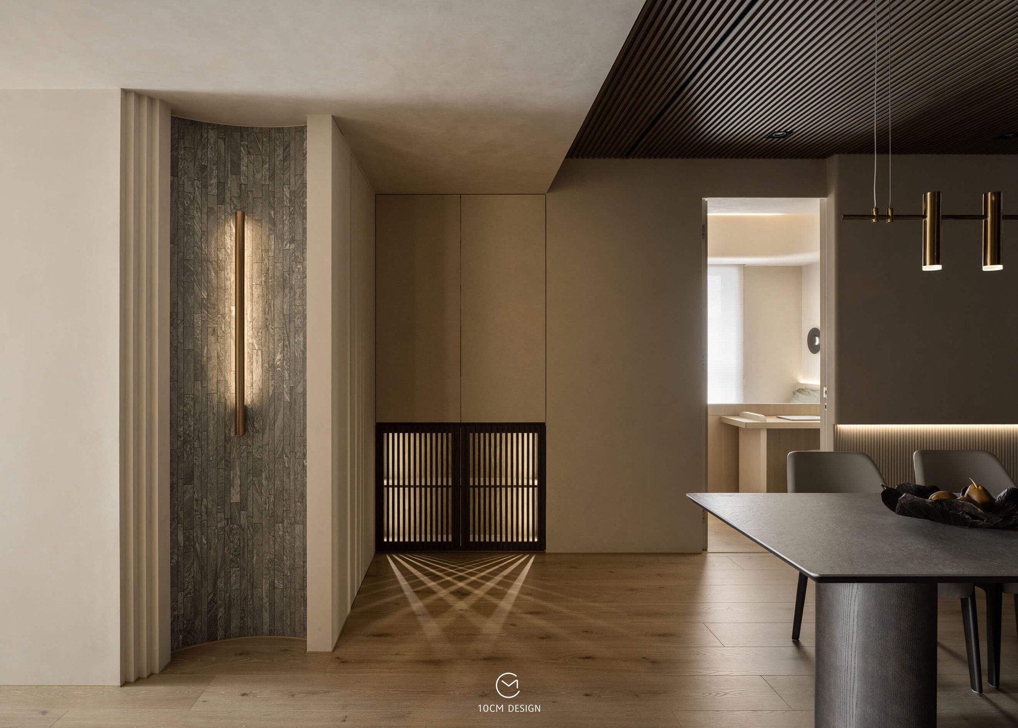 Từ khóa: Thiết kế nội thất phong cách Wabi Sabi, dự án cải tạo nhà thô, căn hộ 51 ping Đài Bắc, nội thất kết hợp gỗ và đá, trần nhà đường cong vòm parabol, không gian sống thanh lịch tĩnh lặng.