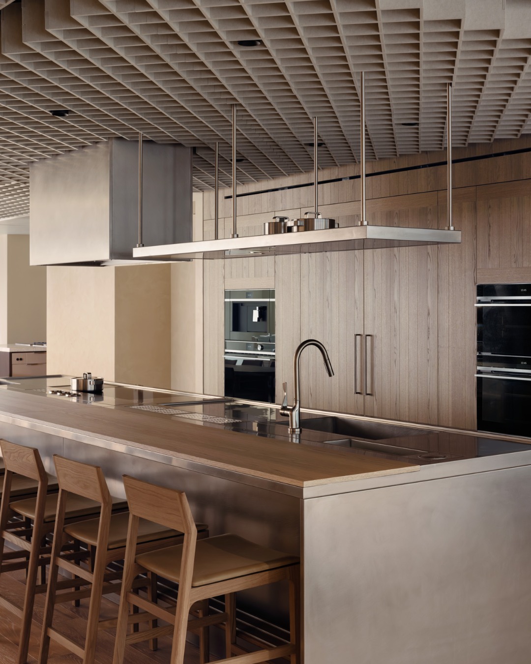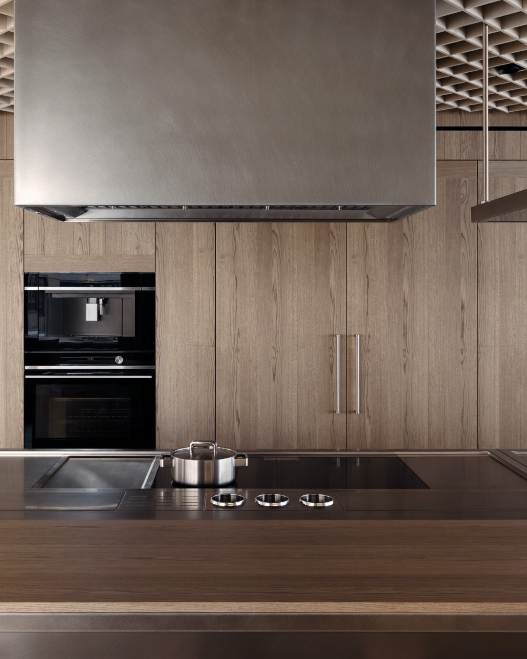 Tâm điểm của trải nghiệm nằm ở ba gian bếp chủ đạo (Hero Kitchens), lần lượt phô diễn ba ngôn ngữ thiết kế đặc trưng: Tối giản (Minimal), Đương đại (Contemporary) và Chuyên nghiệp (Professional). Được hiện thực hóa thông qua sự hợp tác chặt chẽ với các chuyên gia chế tác gỗ (millwork), những không gian này là minh chứng sống động cho khả năng thích ứng linh hoạt của thương hiệu – trải dài từ sự tích hợp “ẩn mình” liền mạch đến những tuyên ngôn hình khối đầy tính biểu cảm.