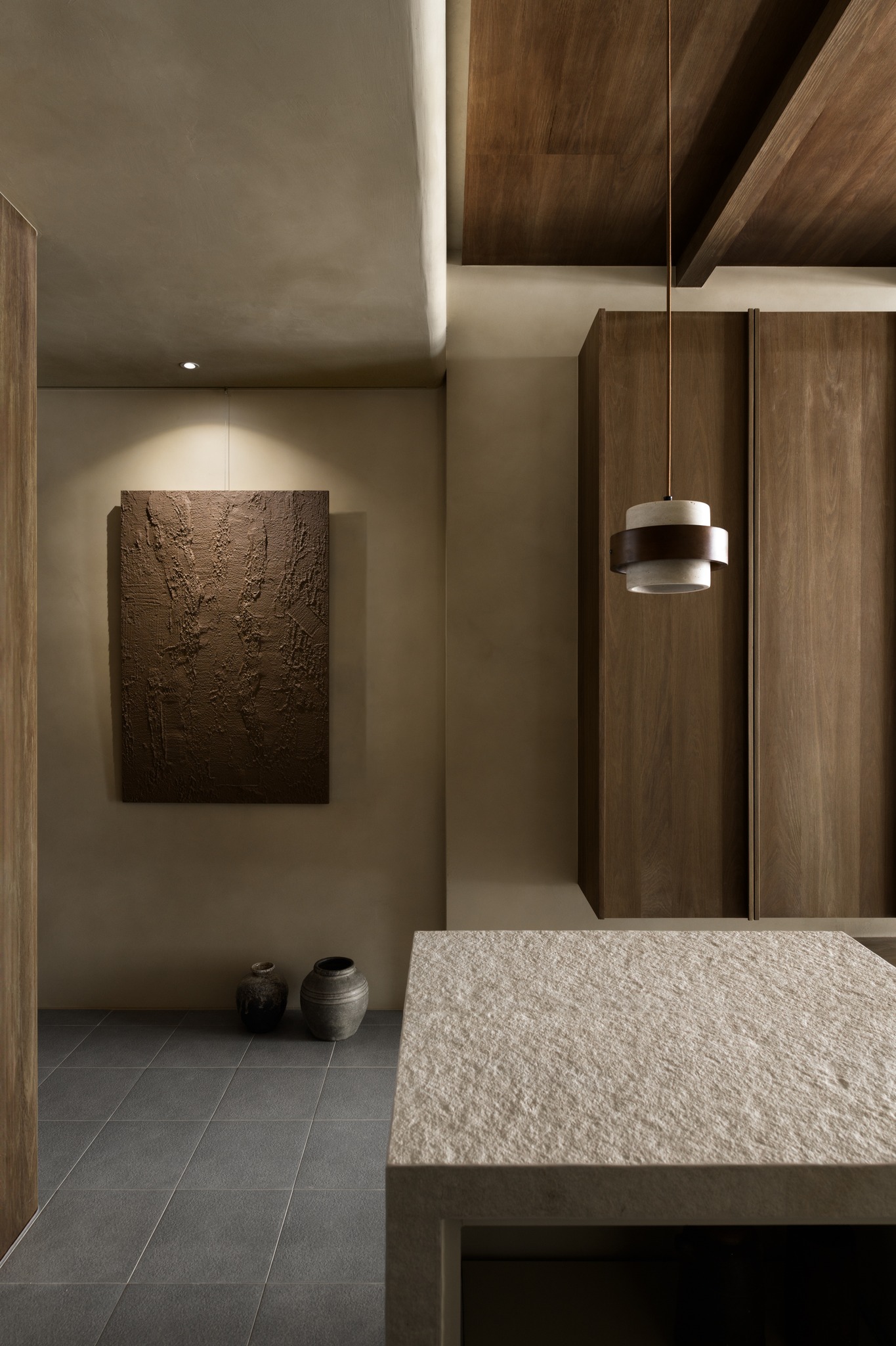 Triết lý thiết kế của dự án tập trung vào việc sử dụng vật liệu gỗ như một công cụ điều tiết thị giác và cảm xúc: