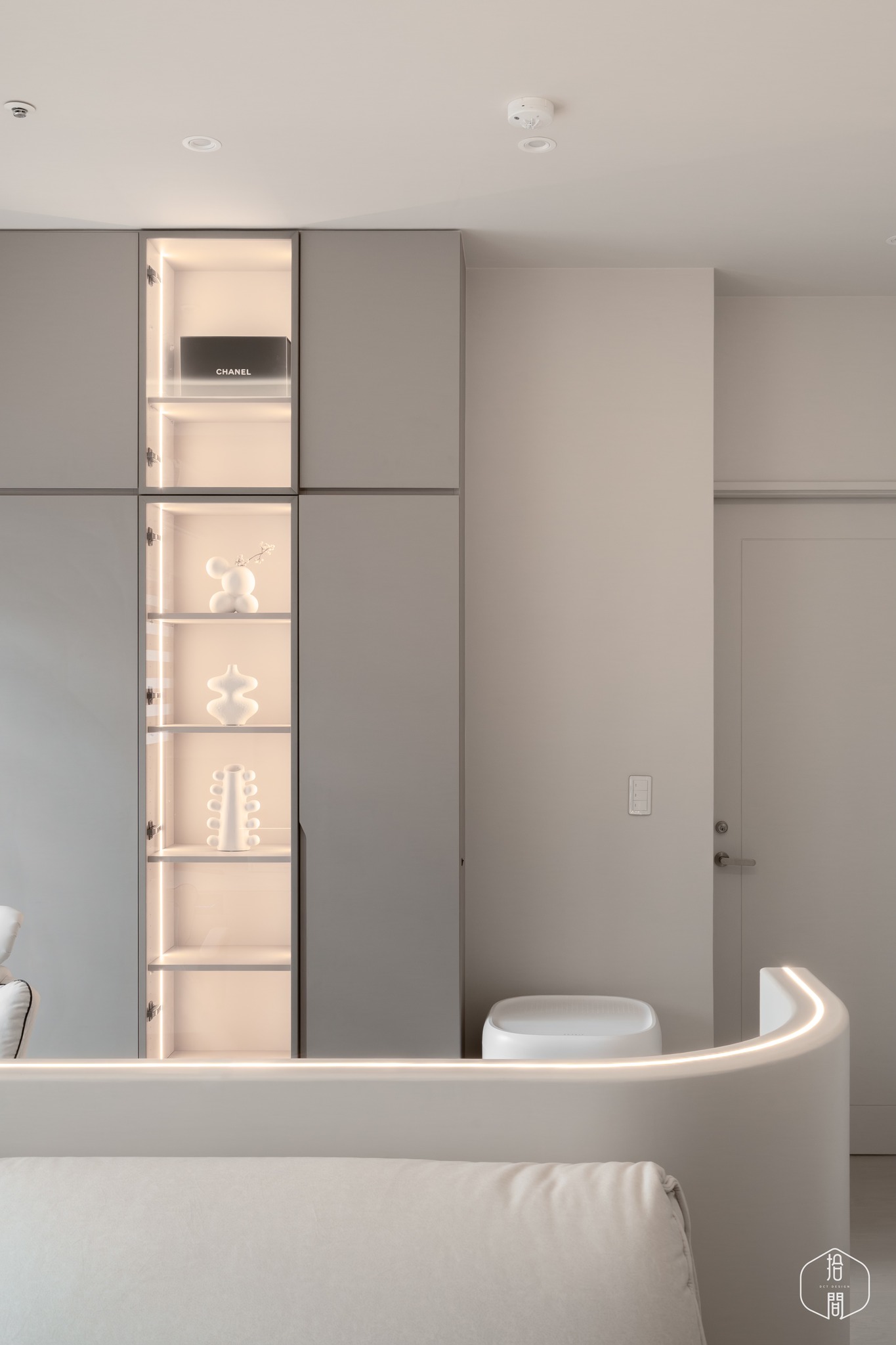 Đường viền phát sáng: Việc cấy ghép các dải đèn LED ẩn dọc theo đường cong của bức tường đã vẽ nên một đường nét ánh sáng mê hoặc, trở thành tâm điểm thị giác tuyệt đẹp cho toàn bộ căn phòng.