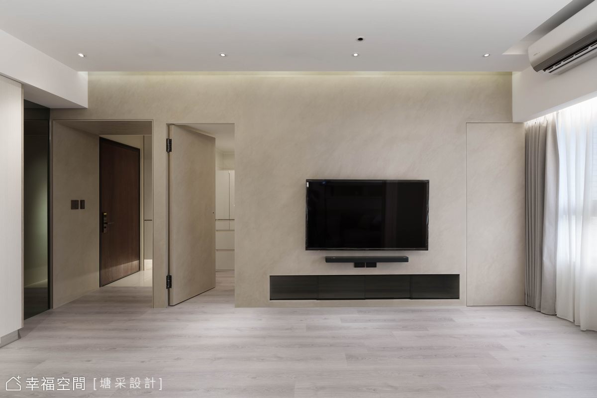 Thay vì những bức tường ngăn đơn thuần, thiết kế đã tích hợp hệ tường tivi thành một cấu trúc hai mặt thông minh. Giải pháp này mang lại hiệu quả kép: