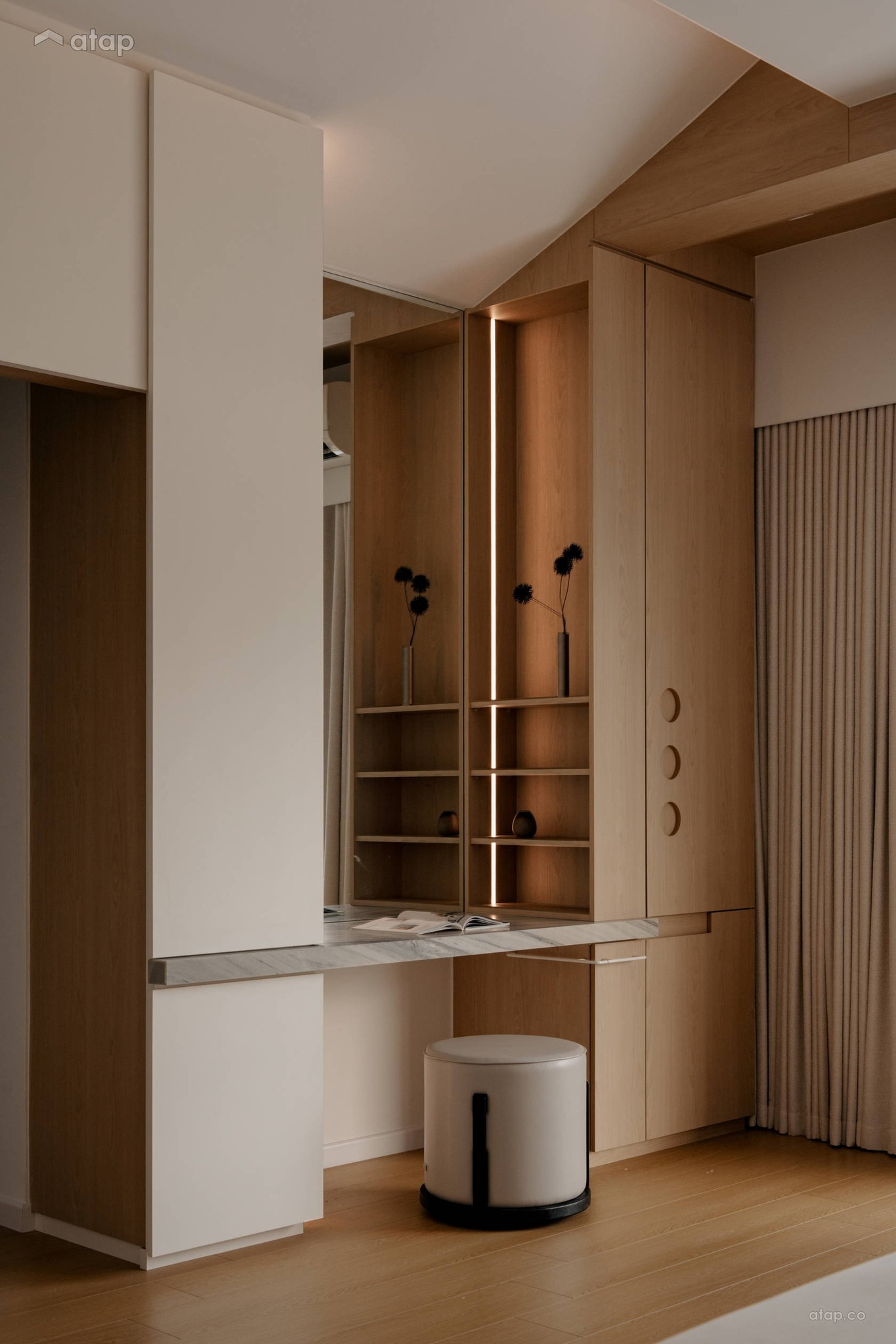 Chiều sâu vật liệu: Sự tương phản đầy chủ ý giữa nét thô ráp của kiến trúc nguyên bản và sự bóng bẩy của đá cẩm thạch đã tạo ra một sức hút thị giác mạnh mẽ, ôm trọn lấy cảm xúc của người sử dụng.