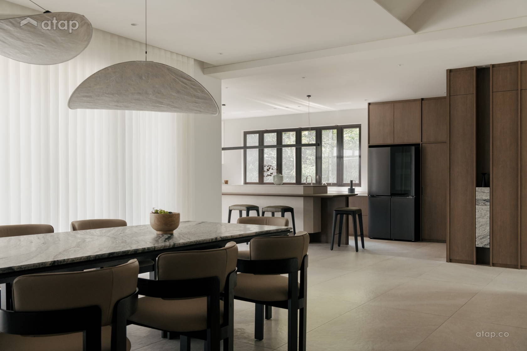 Bố cục mở khoáng đạt: Bố cục mở ngập tràn ánh sáng tự nhiên giúp duy trì một dòng chảy xuyên suốt, kết nối mượt mà các khu vực sinh hoạt.