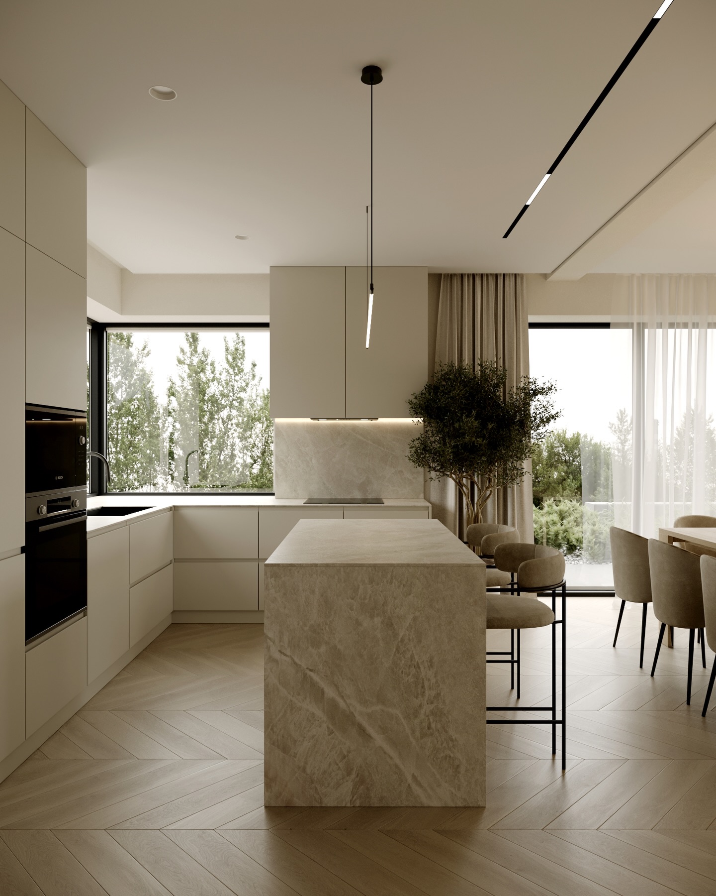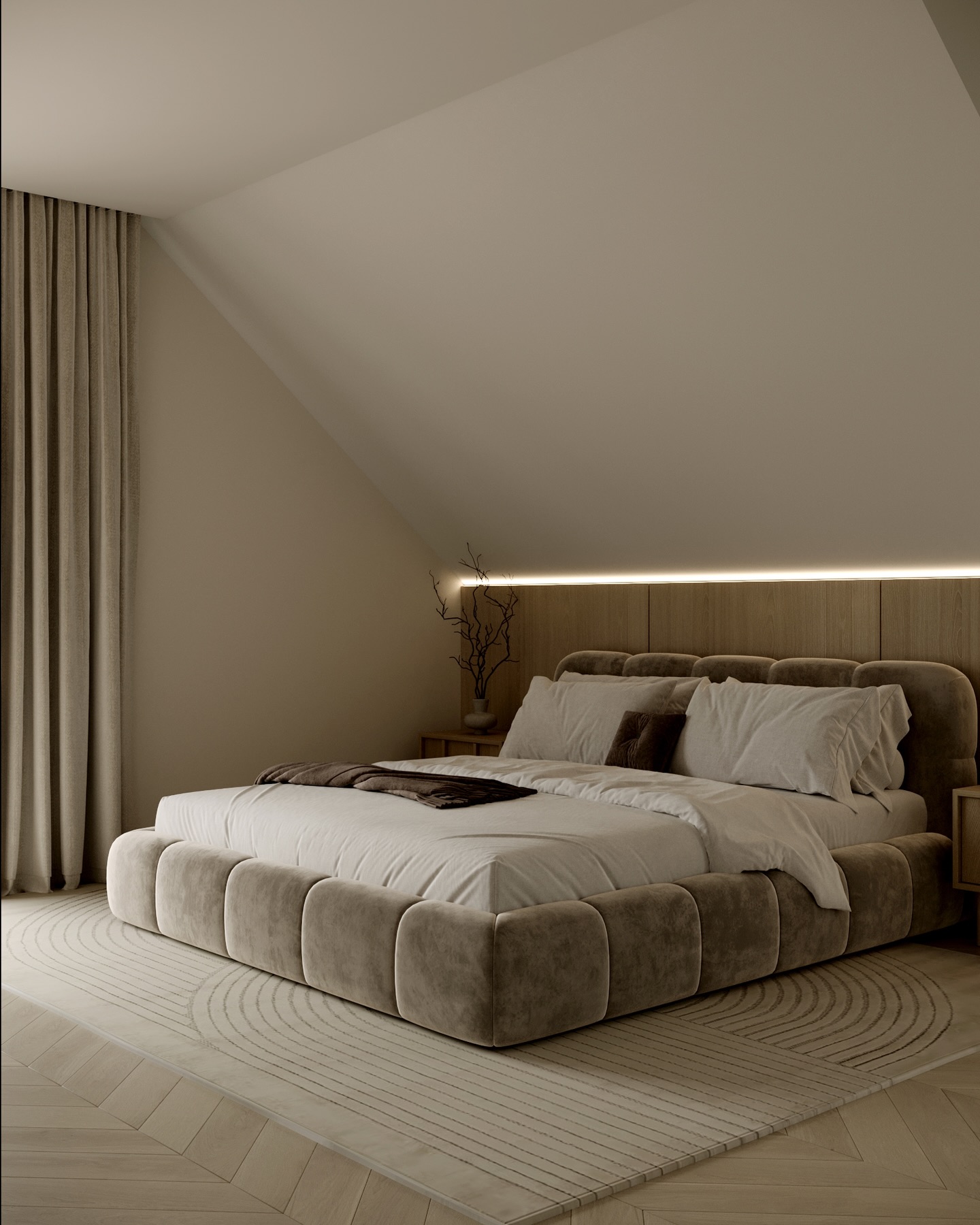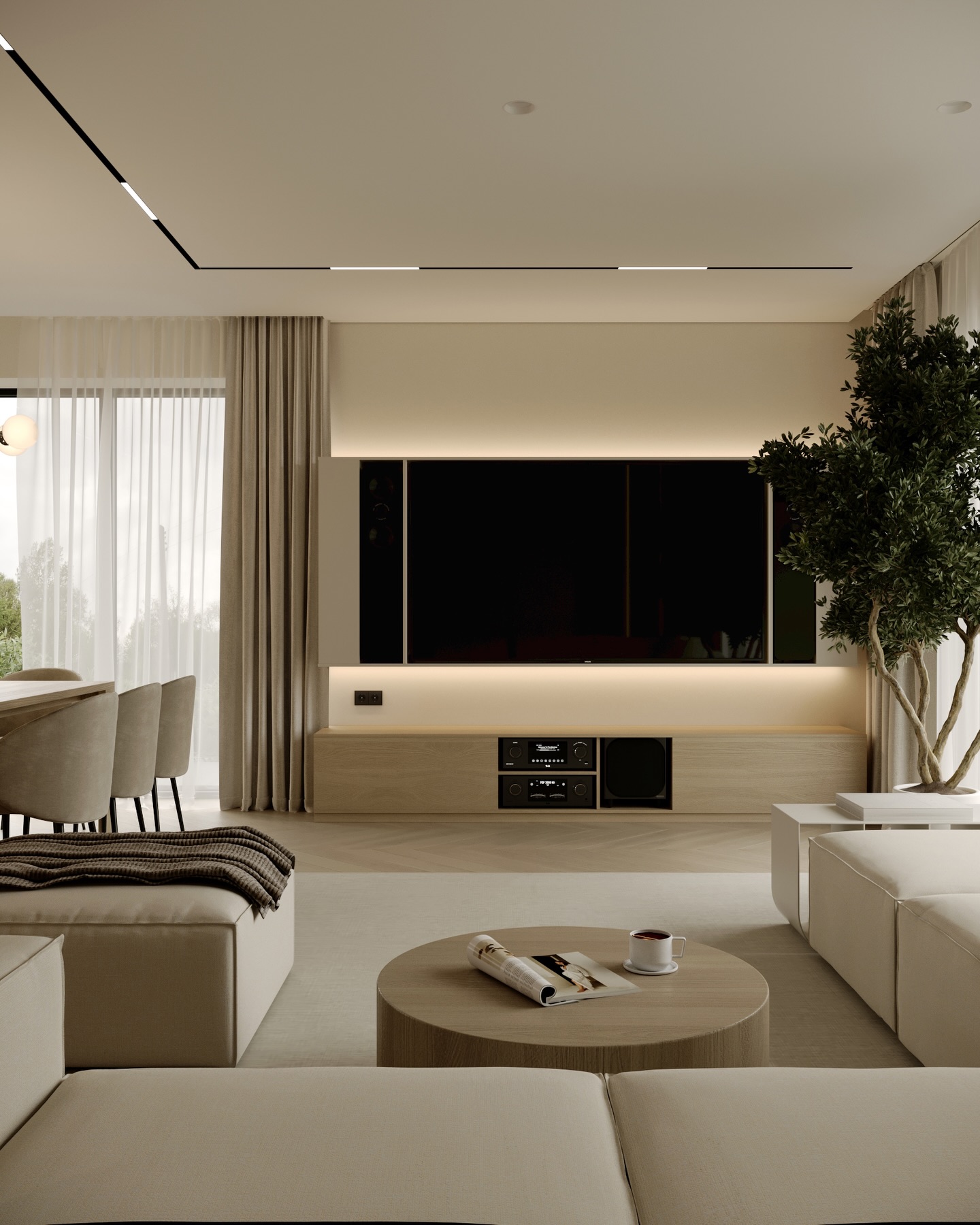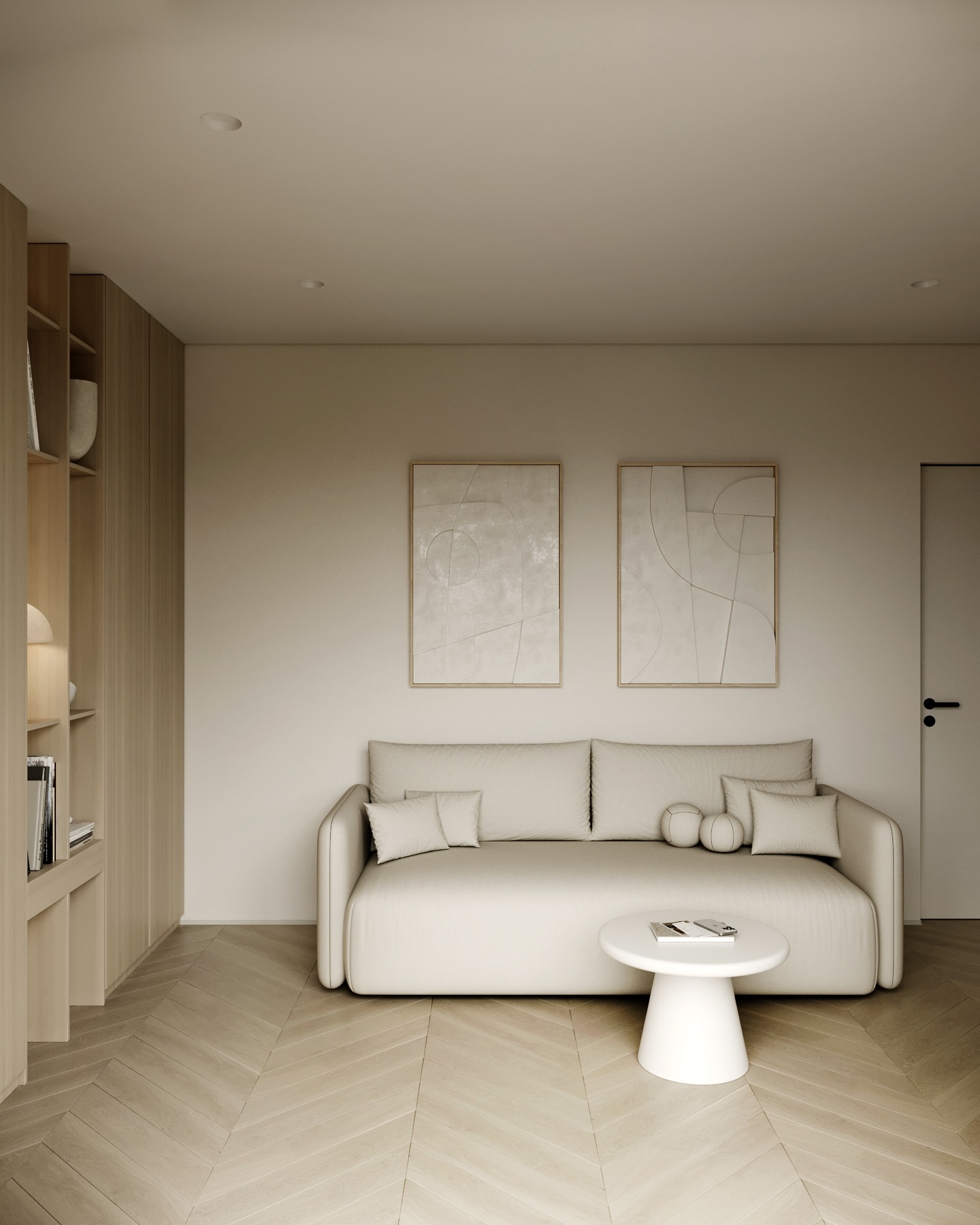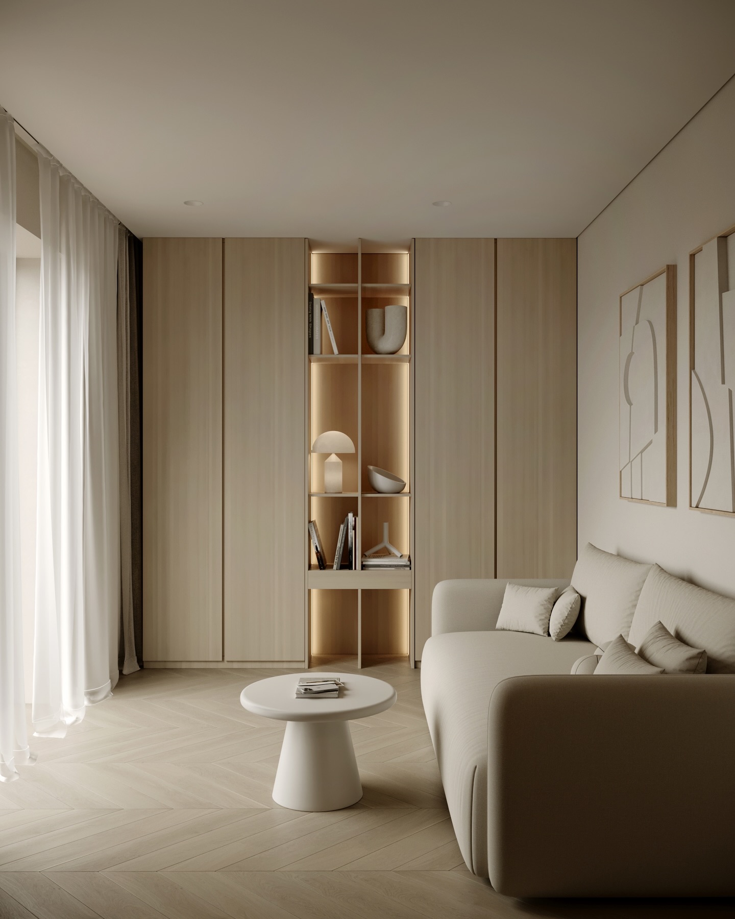 Trong ngôn ngữ thiết kế đương đại, phong cách Tối giản (Minimalism) không chỉ đơn thuần là sự tinh giản đồ đạc, mà là quá trình chắt lọc những tinh túy của vật liệu và ánh sáng để kiến tạo nên một không gian sống thanh tao. Công trình dưới đây là minh chứng cho sự kết hợp bậc thầy giữa tông màu beige chủ đạo và chất liệu gỗ sáng tự nhiên, nơi mỗi đường nét bo tròn và dải ánh sáng đều mang mục đích dẫn dắt cảm xúc của người cư ngụ.