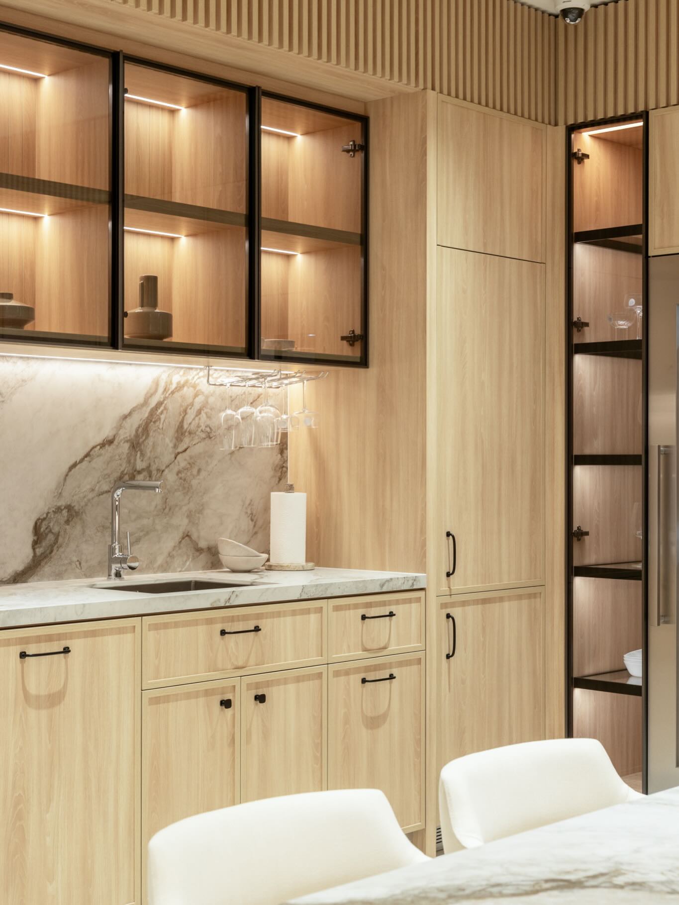Đóng tự thân: Khi đẩy nhẹ trở lại, hệ thống sẽ tự động “bắt” lấy cánh tủ và kéo nó về vị trí đóng hoàn toàn với một nhịp độ chậm dần đều đầy nghệ thuật.