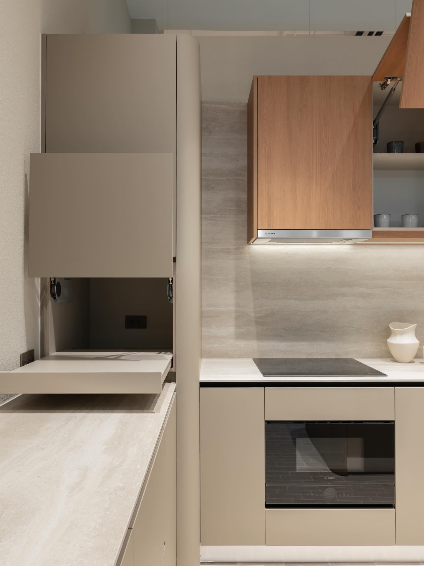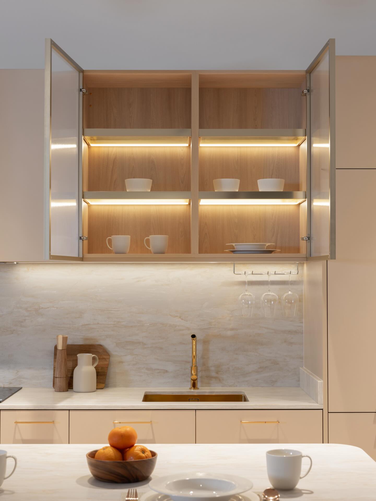 Một hệ bếp được trang bị giảm chấn chuẩn mực từ các thương hiệu hàng đầu (như Blum, Hafele, hay Grass) qua bàn tay của chuyên gia sẽ mang lại cảm giác: