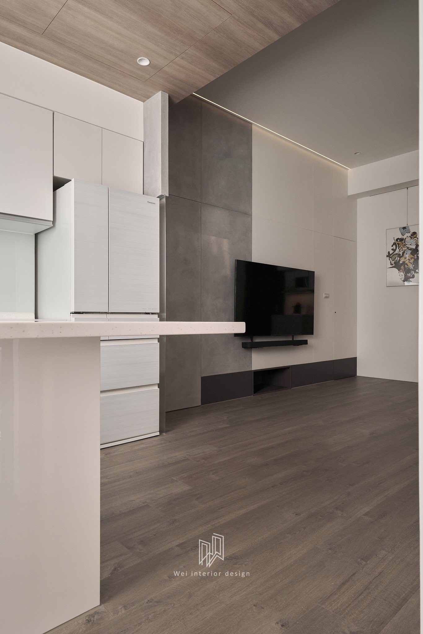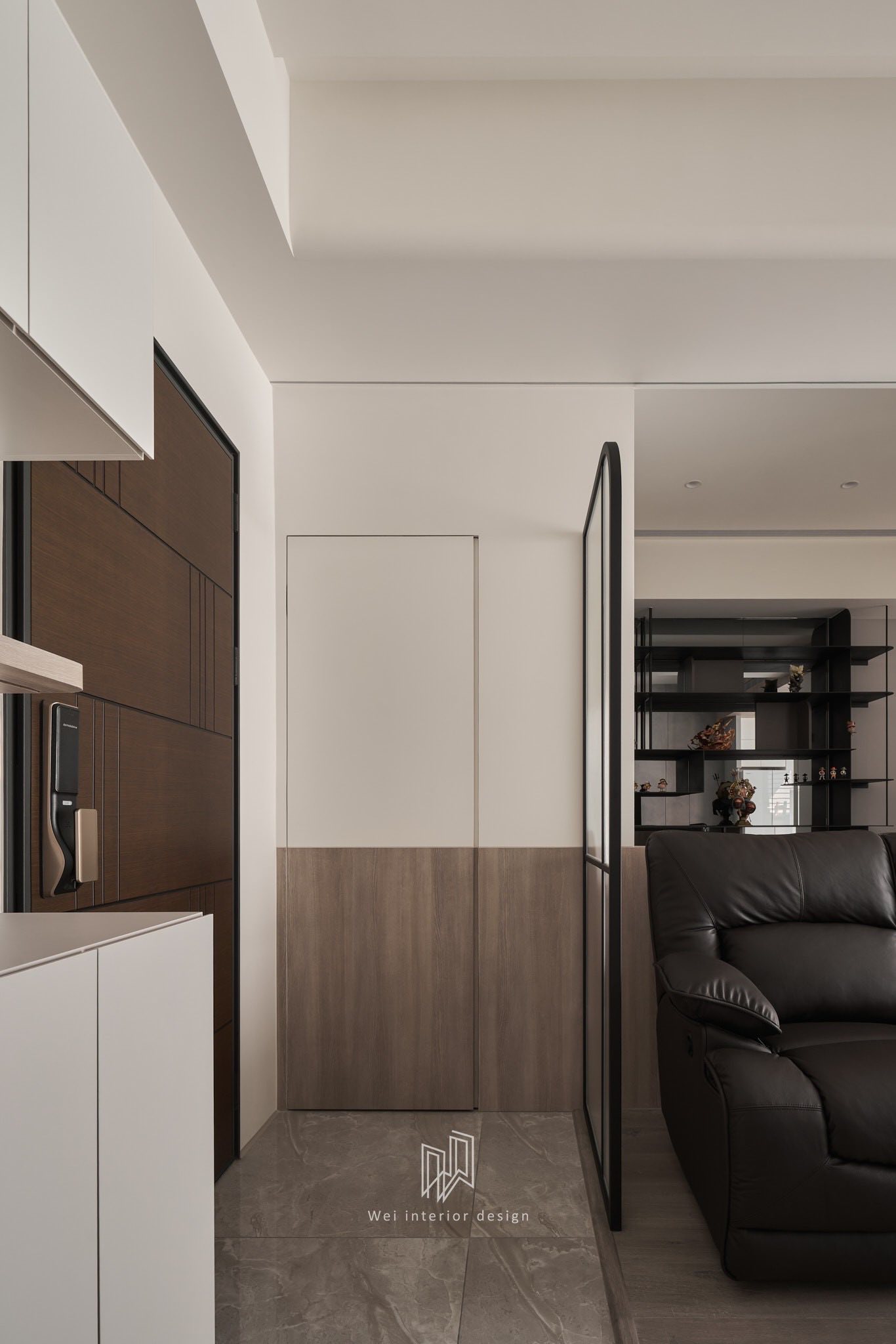 Sức hút của căn hộ đến từ cách phối trộn lớp lang các loại vật liệu có tính chất tương phản nhưng lại đồng nhất về sắc thái: