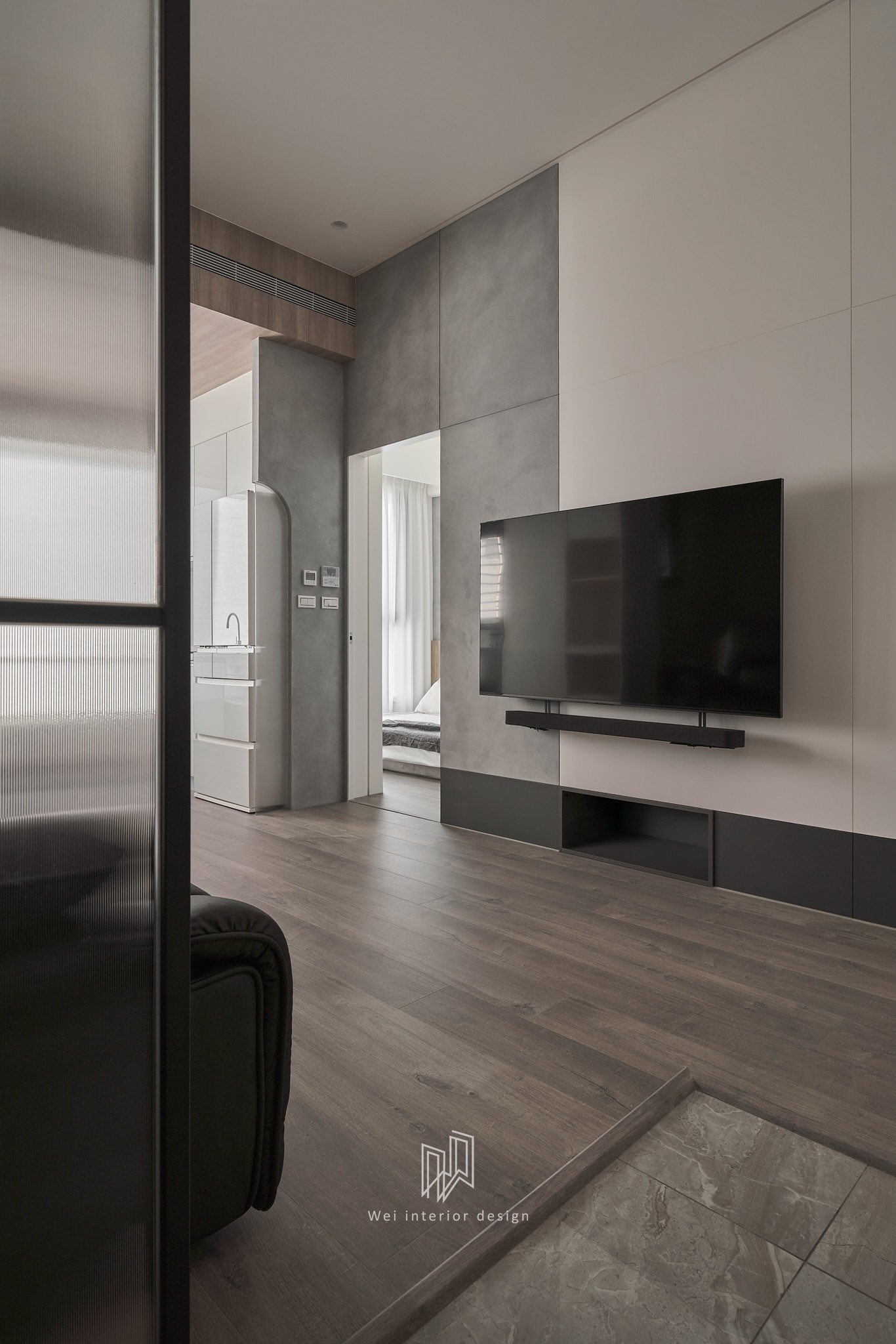 Từ khóa: Thiết kế nội thất căn hộ 16 Ping, phong cách hiện đại gương xám và kính sọc, sơn hiệu ứng Nga trong nội thất, giải pháp căn hộ 1+1 phòng ngủ, thiết kế nội thất ánh sáng LED hiện đại.