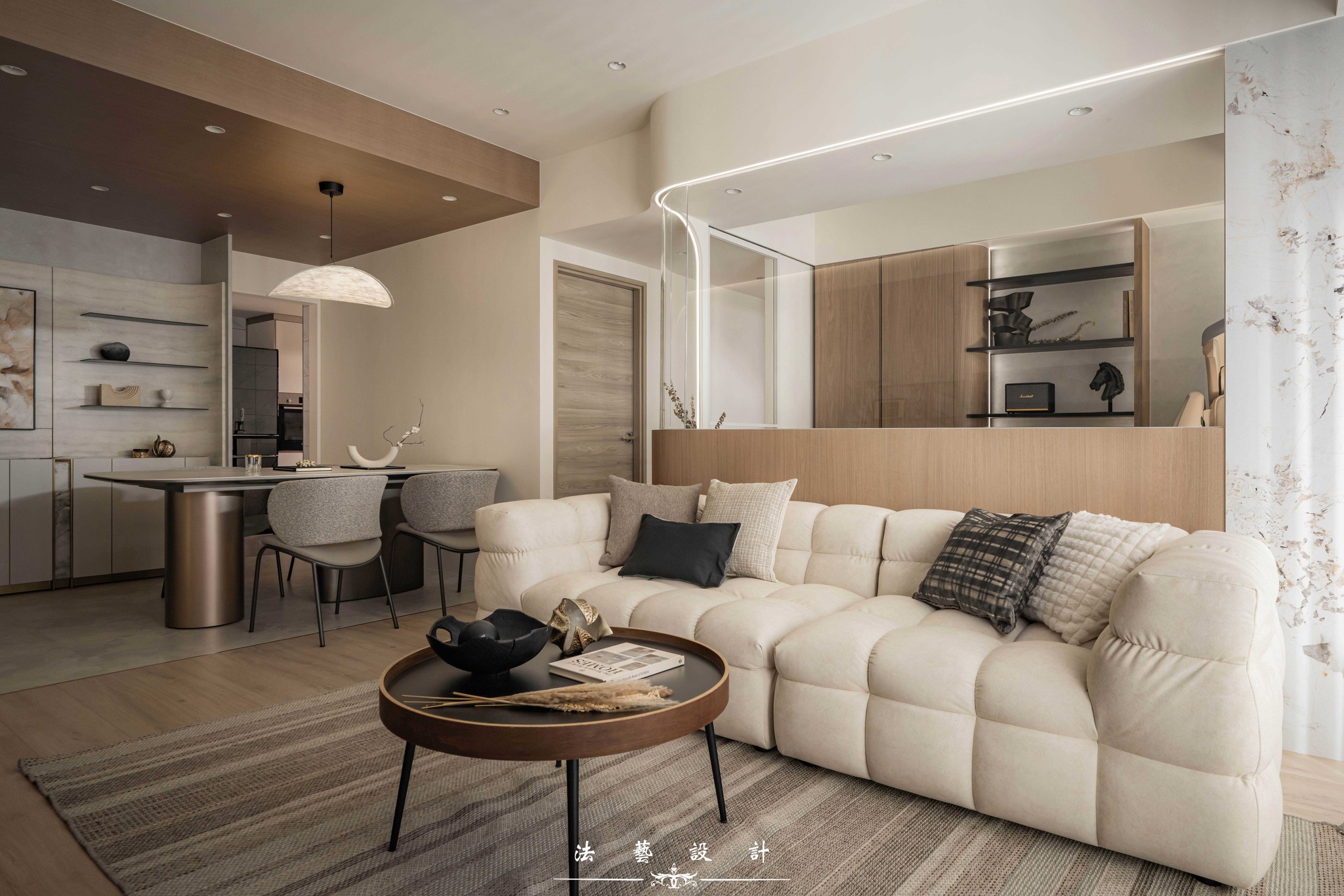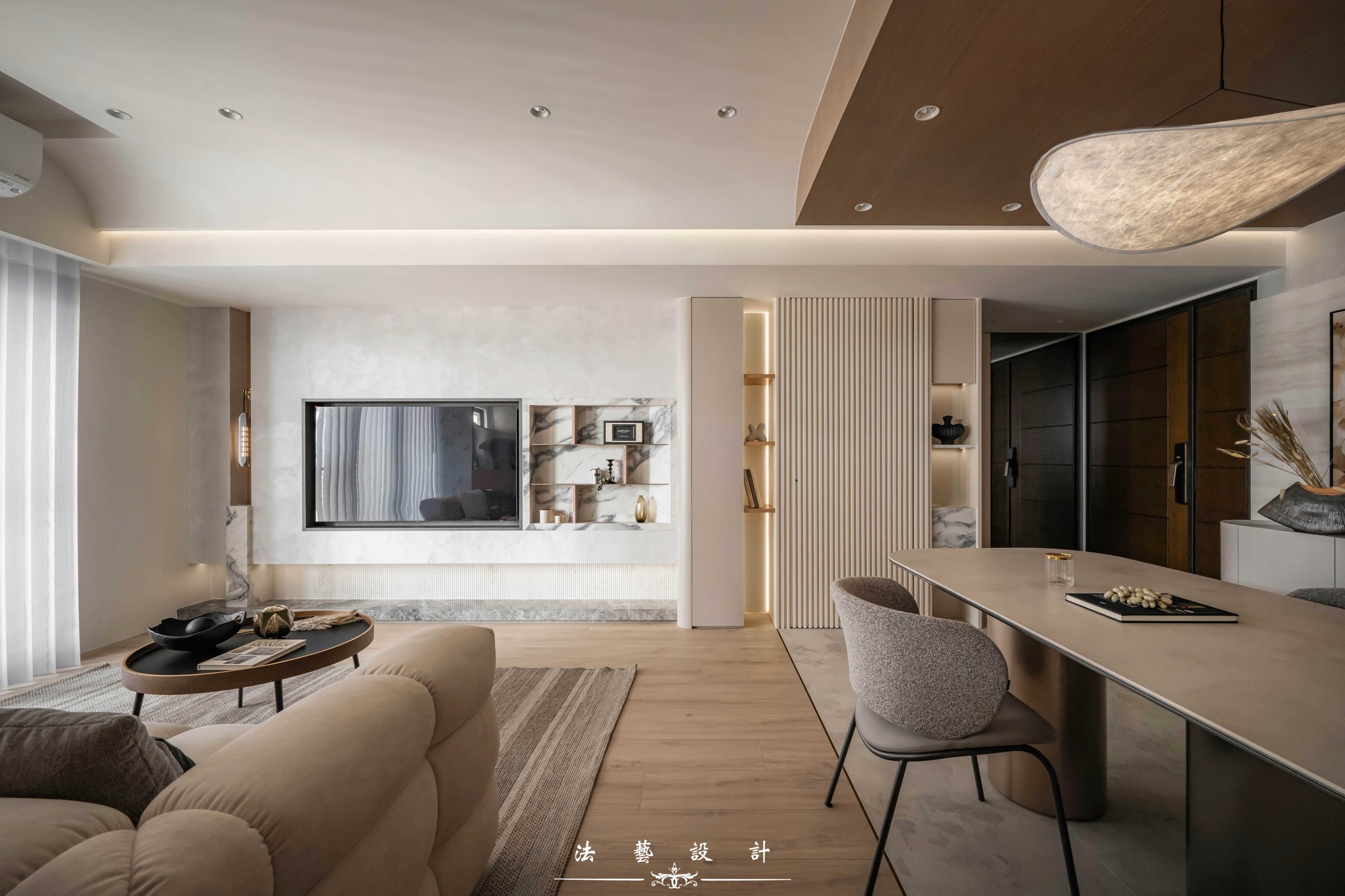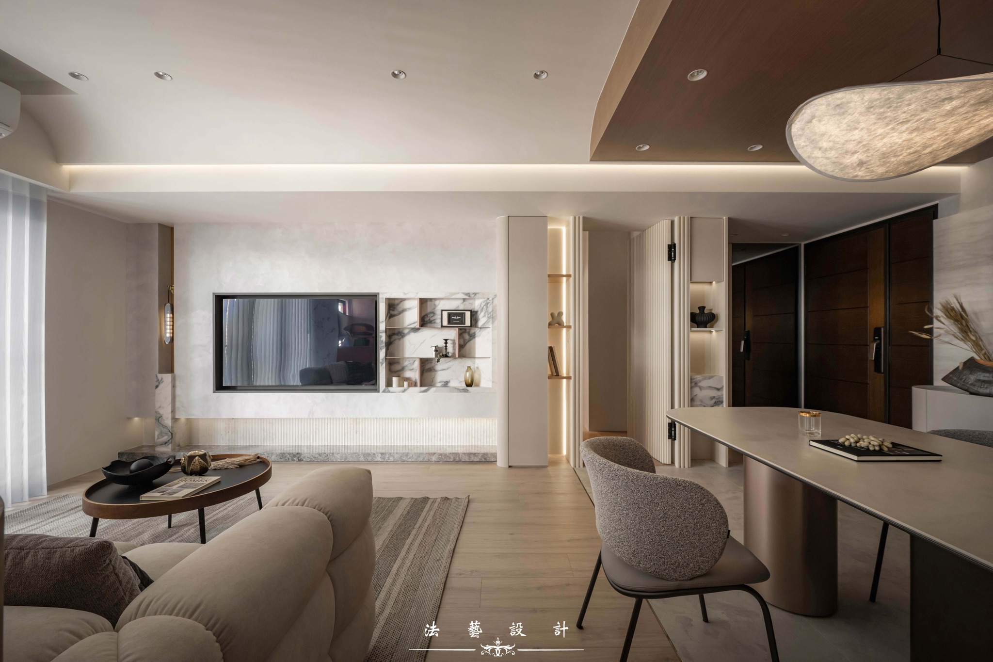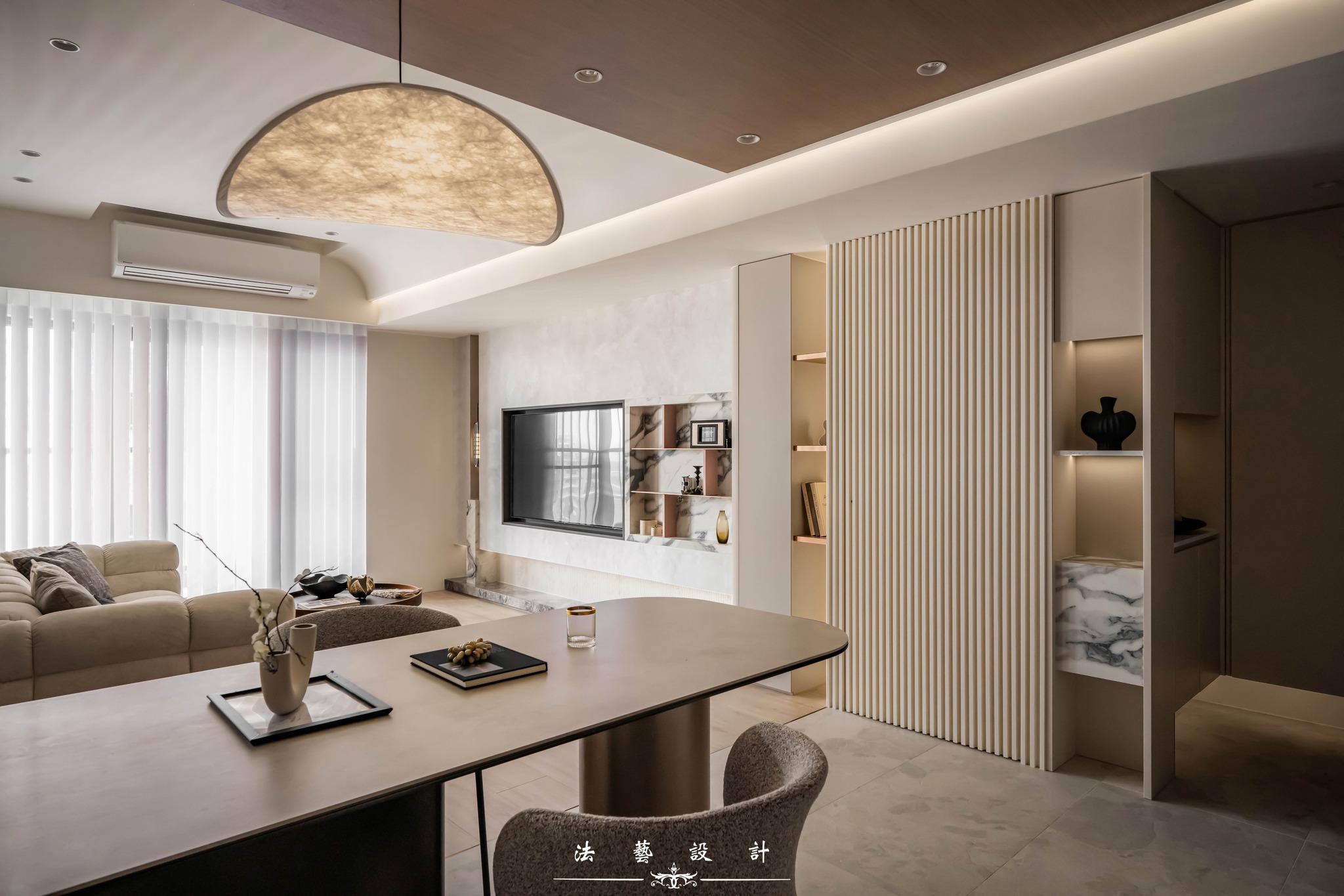 Ánh sáng khẽ buông lơi trên nền không gian mang tông màu yến mạch thanh tao. Với diện tích 28 ping (quy mô 3+1 phòng ngủ), thiết kế này là minh chứng hoàn hảo cho một không gian sống không phô trương nhưng đầy chiều sâu. Sự đan xen giữa sắc xám ấm, vân đá và các chi tiết kim loại đã kiến tạo nên một tổng thể nội thất tinh tế, mang lại cảm giác dễ chịu và vô cùng bền dáng theo thời gian.