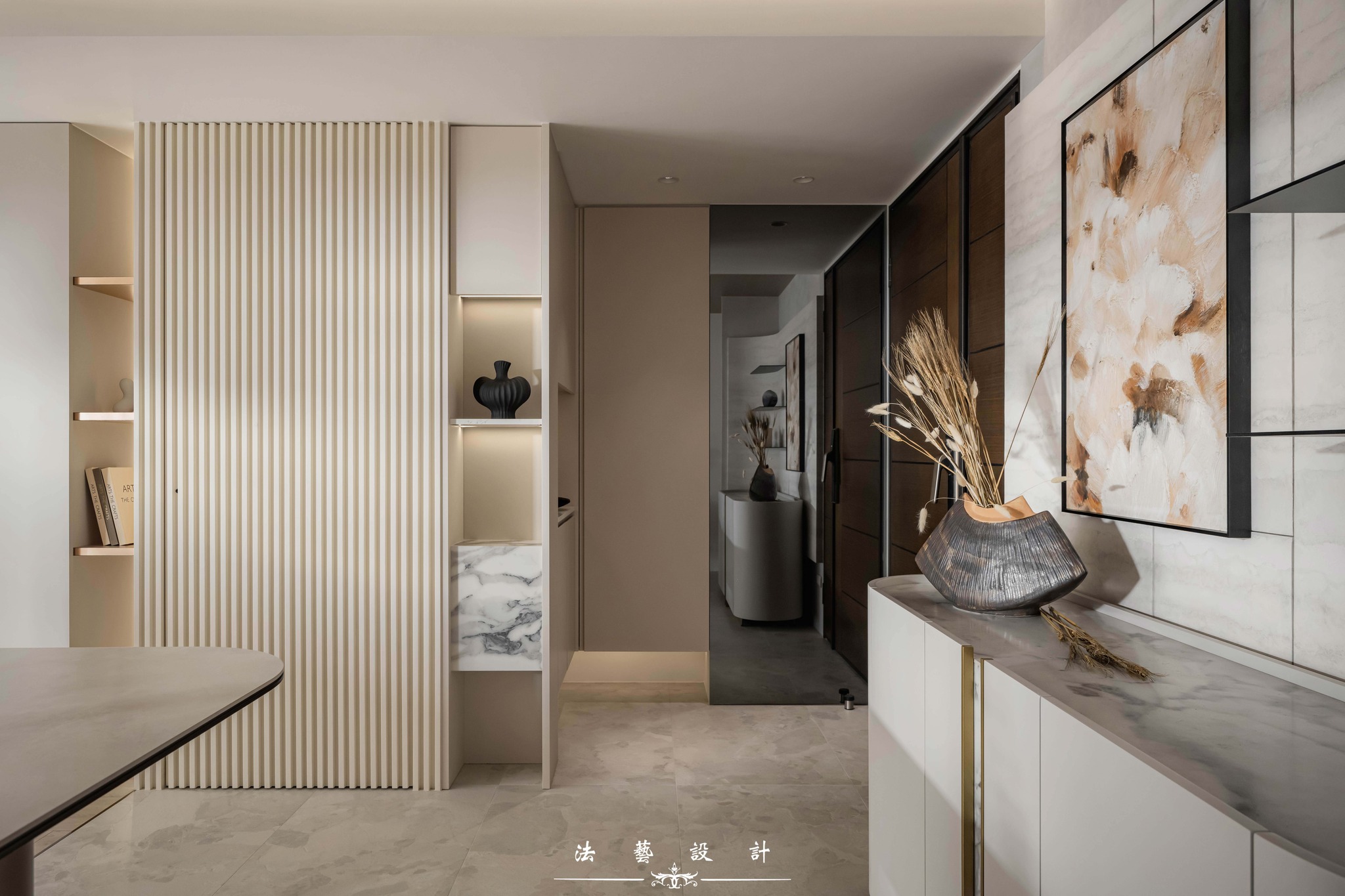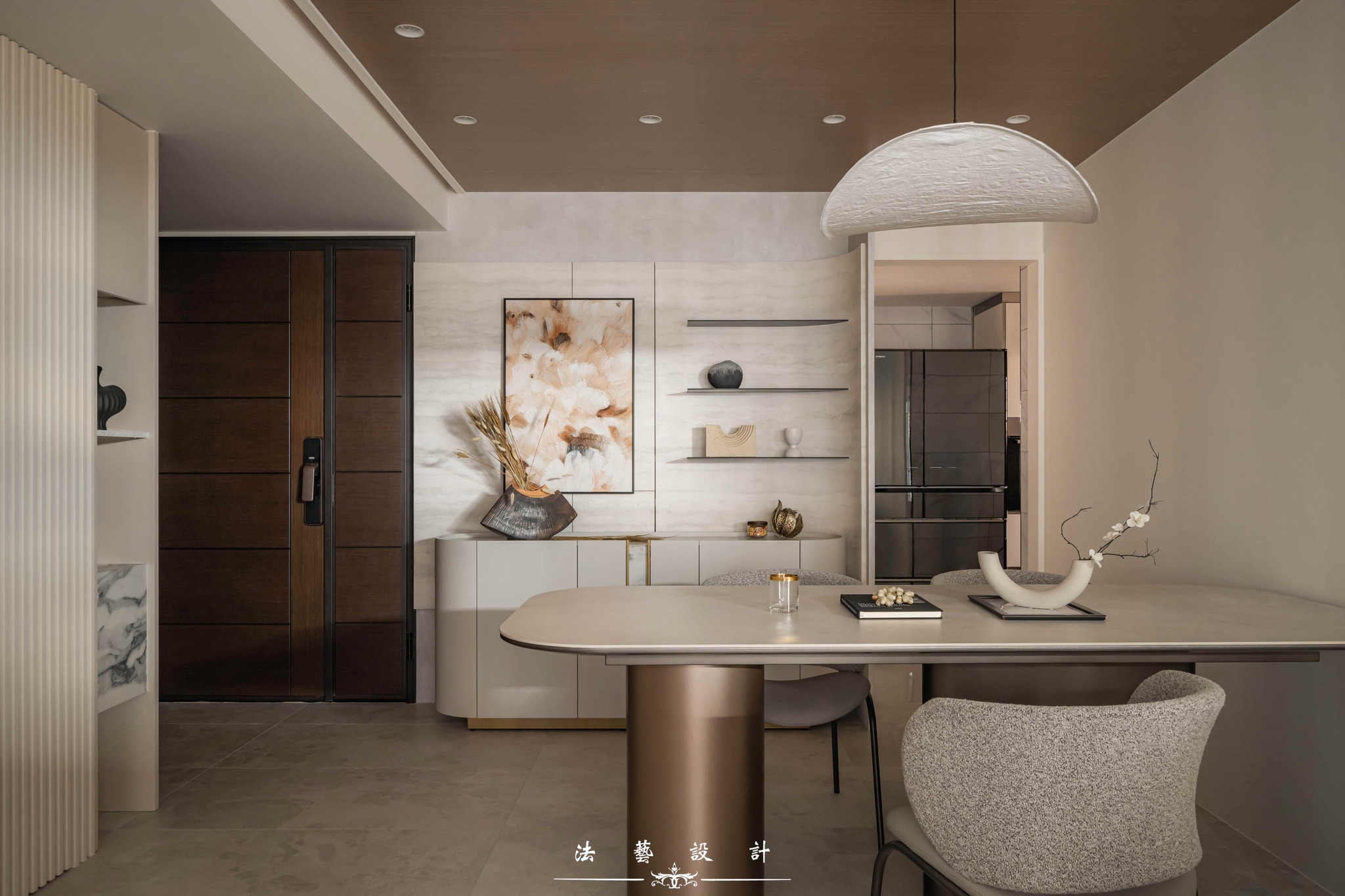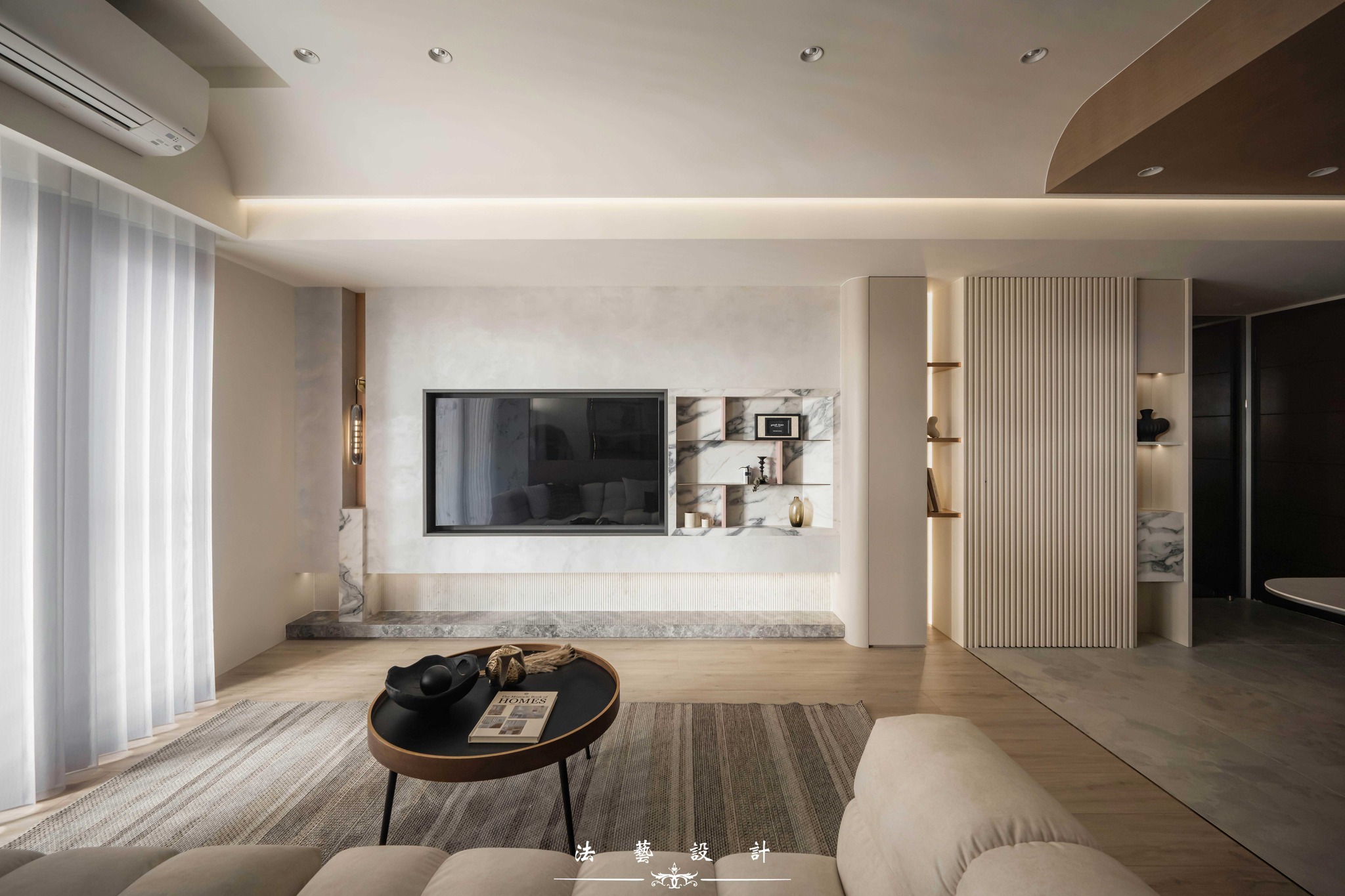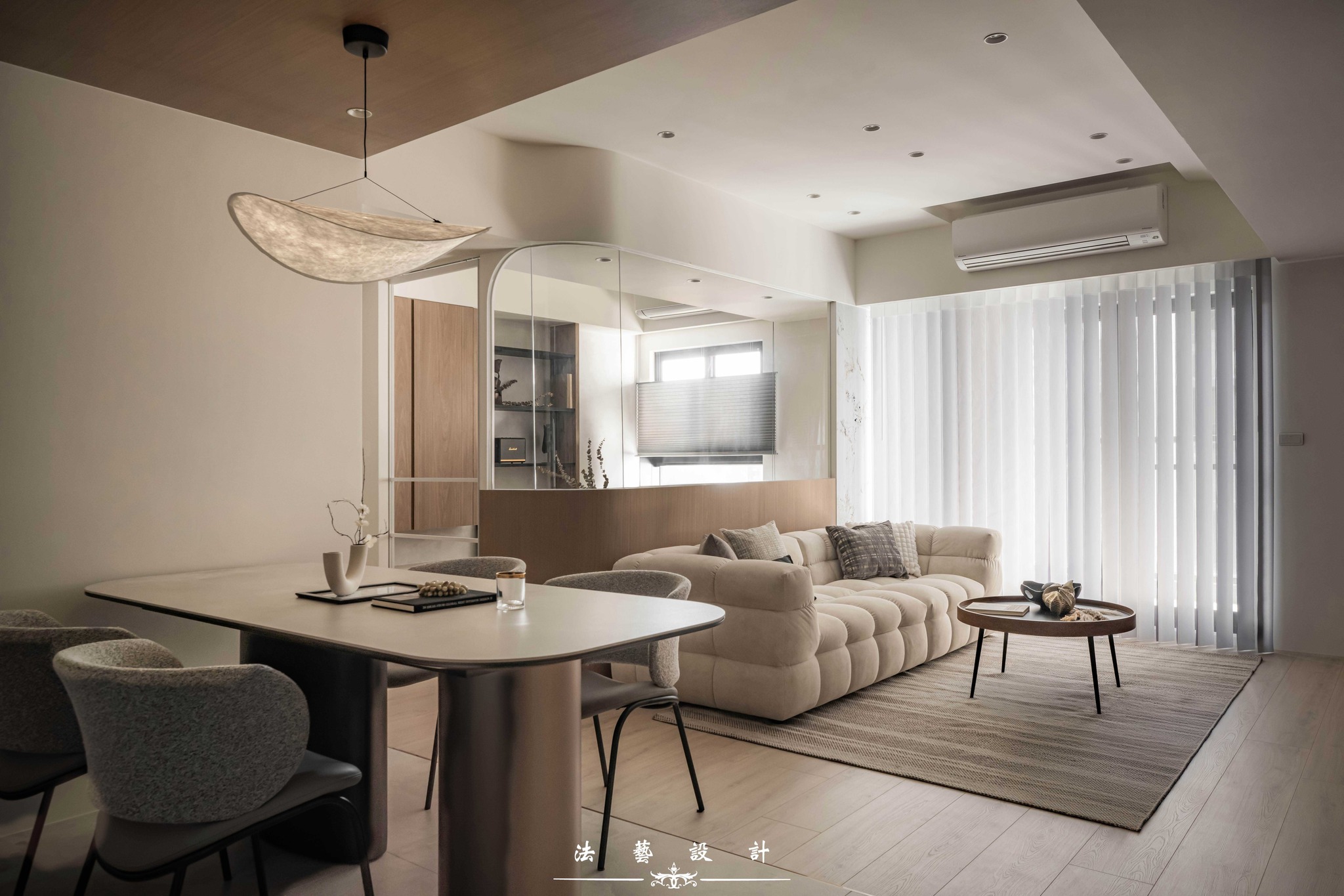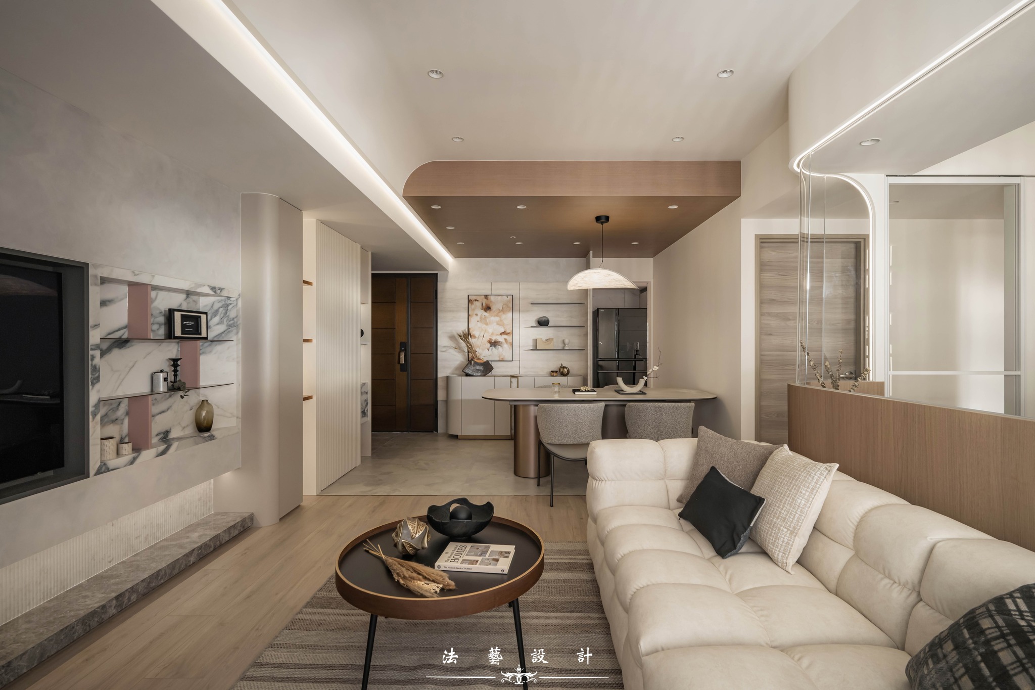 Ánh sáng khẽ buông lơi trên nền không gian mang tông màu yến mạch thanh tao. Với diện tích 28 ping (quy mô 3+1 phòng ngủ), thiết kế này là minh chứng hoàn hảo cho một không gian sống không phô trương nhưng đầy chiều sâu. Sự đan xen giữa sắc xám ấm, vân đá và các chi tiết kim loại đã kiến tạo nên một tổng thể nội thất tinh tế, mang lại cảm giác dễ chịu và vô cùng bền dáng theo thời gian.