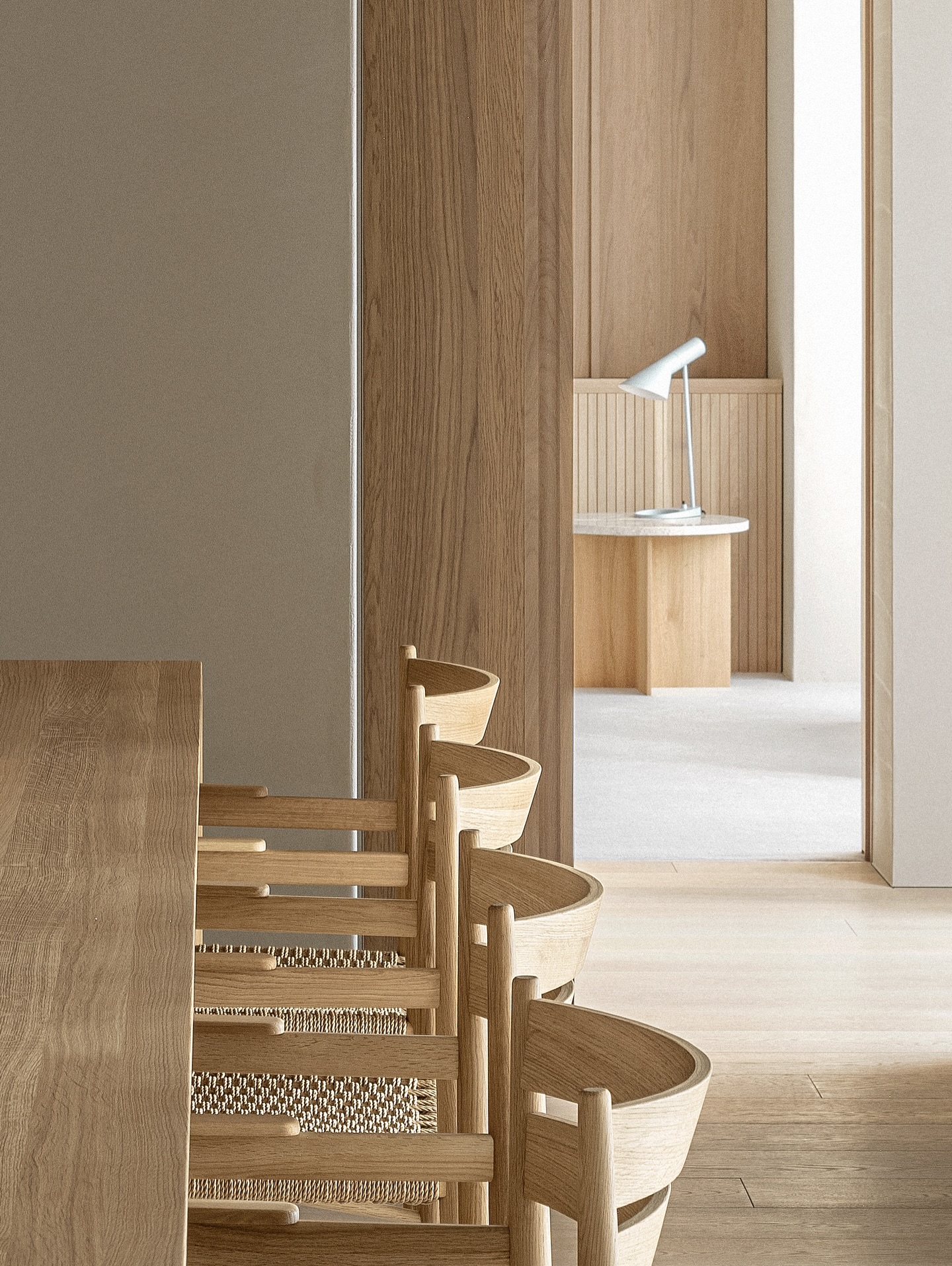 Minh bạch trong vật liệu và kỹ nghệ: Mọi thành phần từ gỗ, đá đến kim loại đều được tôn trọng đặc tính tự nhiên, không cố gắng ngụy tạo hay che lấp. Vẻ đẹp của công trình đến từ sự chân thực của chất liệu và sự tinh xảo trong kỹ nghệ chế tác (craftsmanship).