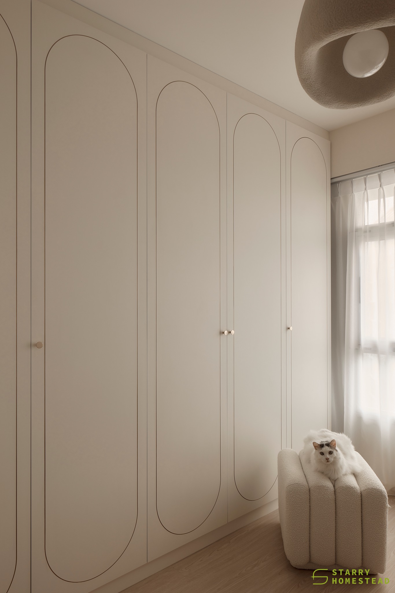 Một trong những đặc trưng đắt giá nhất của công trình là việc loại bỏ hoàn toàn các cạnh sắc thô cứng. Các góc tường được xử lý bo tròn mềm mại, tạo nên sự chuyển tiếp không gian mượt mà và an toàn về mặt thị giác.