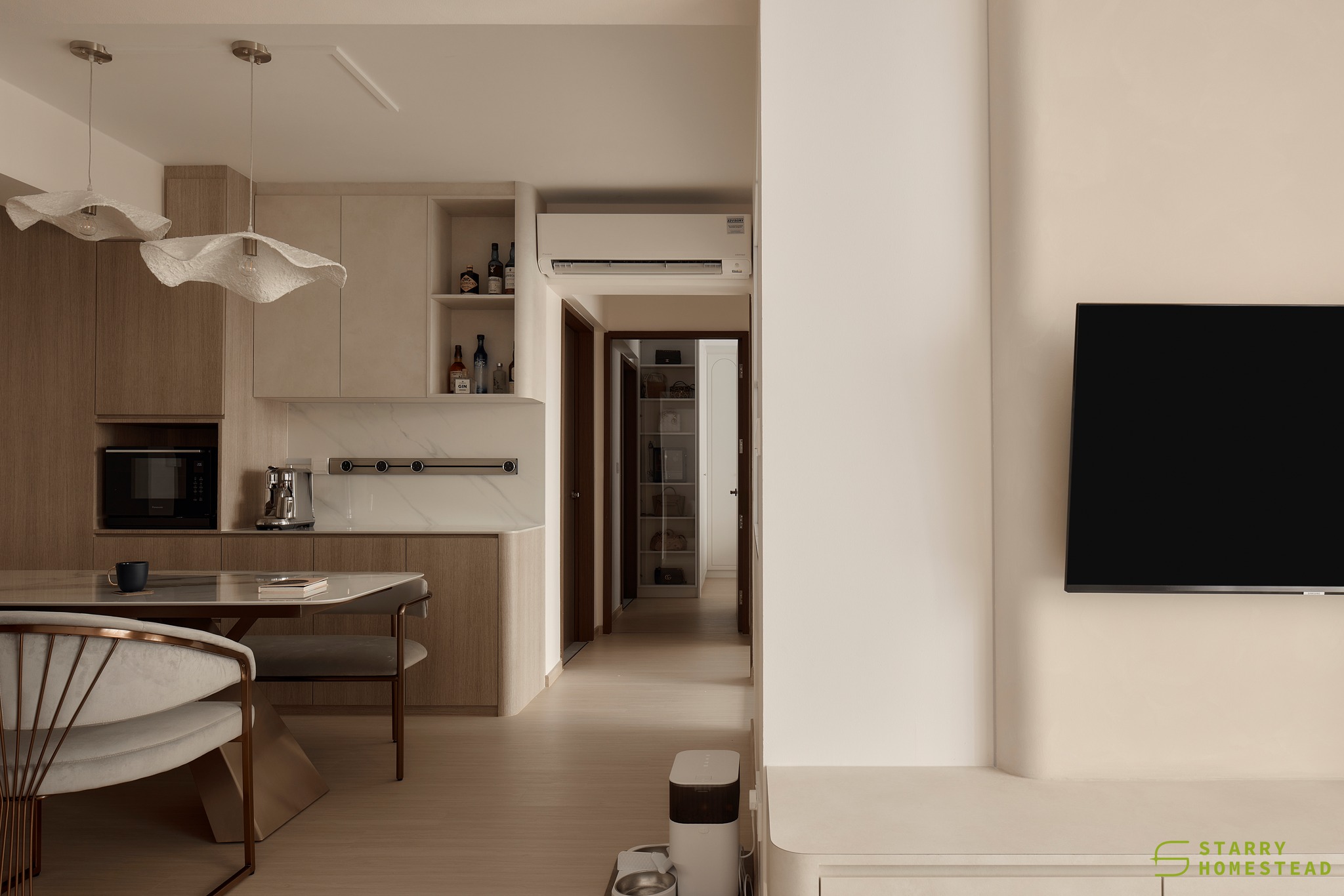 Trong dòng chảy hối hả của cuộc sống đô thị, xu hướng thiết kế nội thất Wabi-sabi kết hợp Hiện đại đang trở thành một liệu pháp tinh thần cho không gian sống. Không phô trương, không cầu kỳ, căn hộ này tập trung vào vẻ đẹp của sự thuần khiết thông qua bảng màu kem, beige và gỗ sáng, kiến tạo nên một chốn về mang đậm tính chữa lành và an yên tuyệt đối.