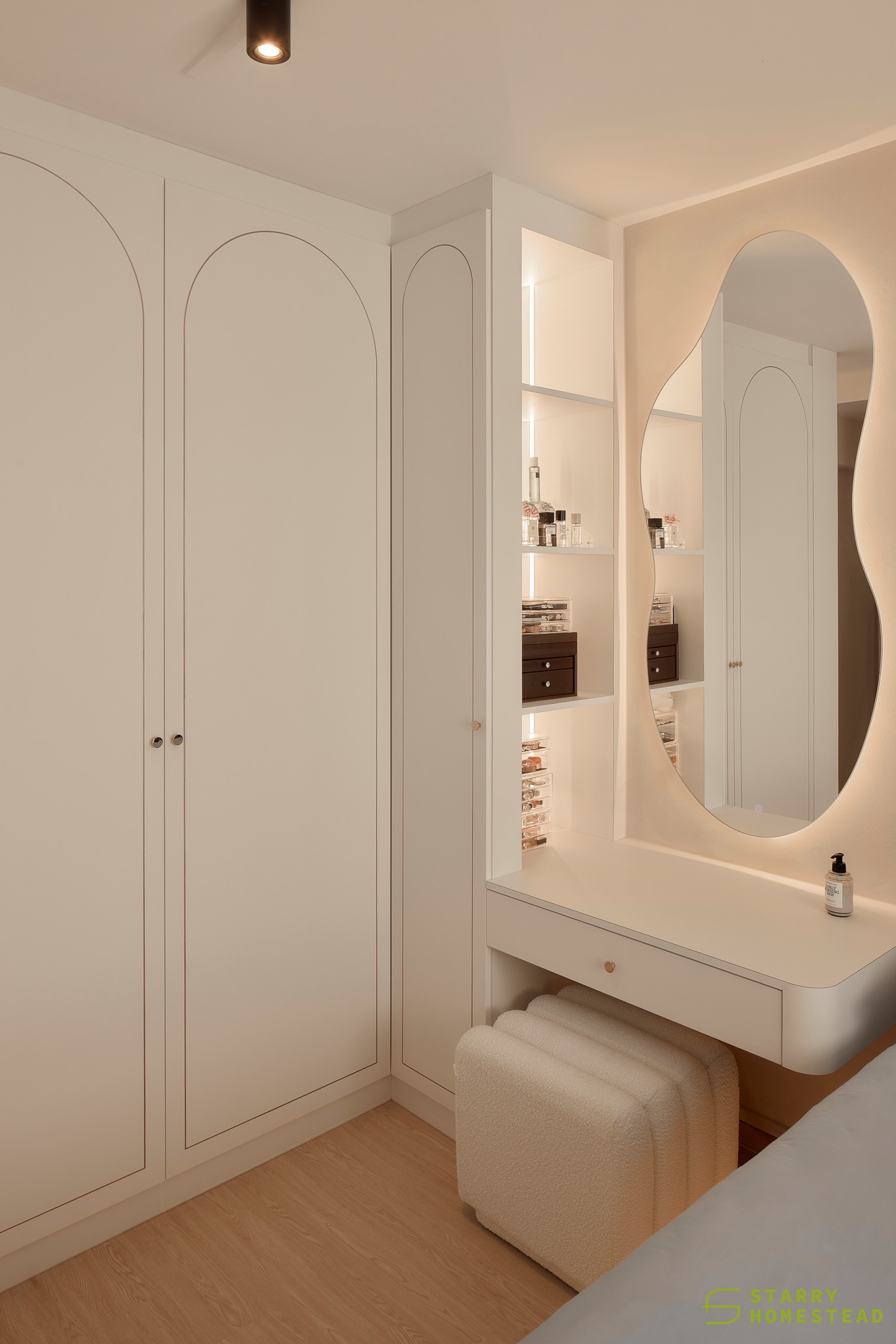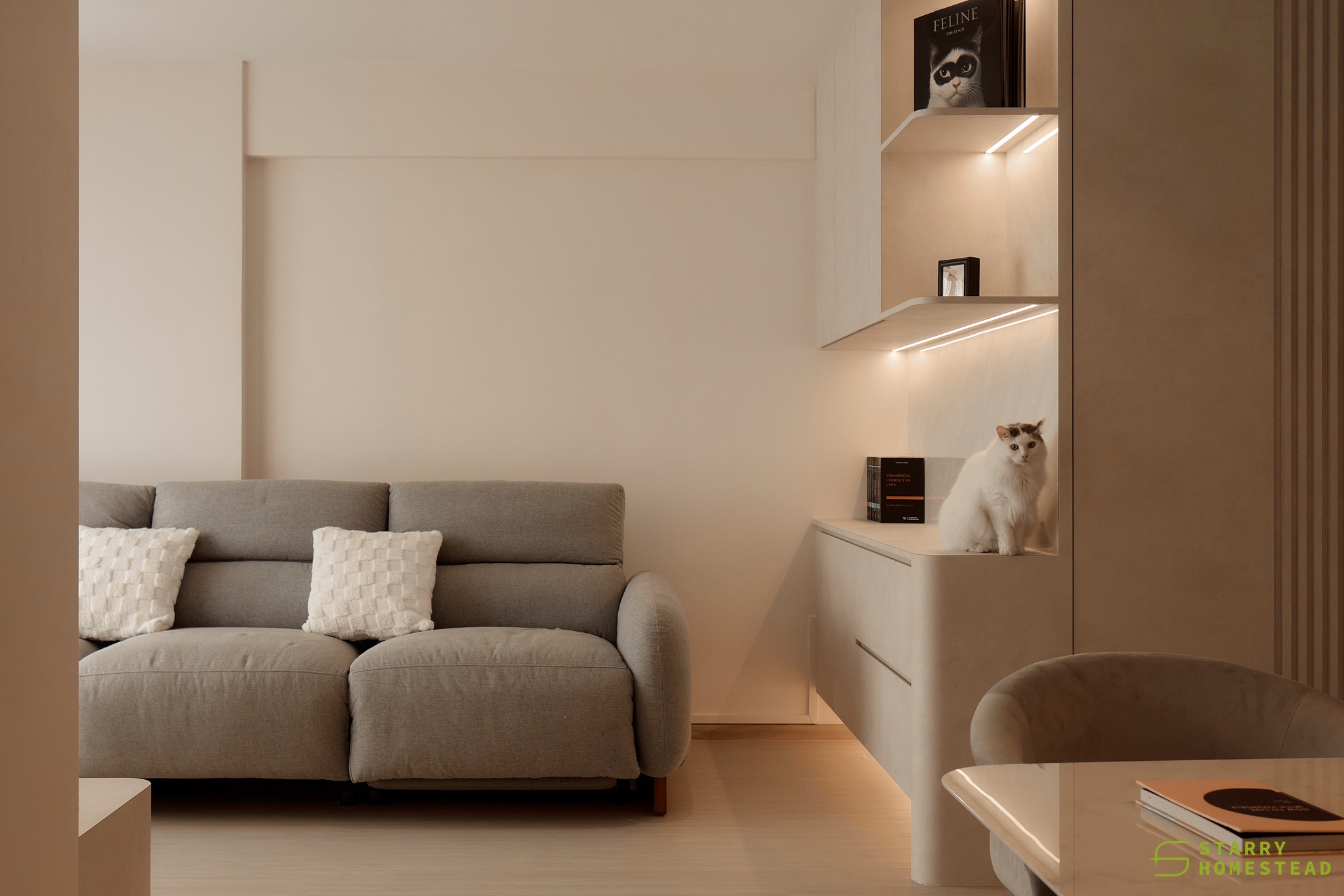 Từ khóa: Nội thất phong cách Wabi-sabi hiện đại, thiết kế không gian chữa lành, bo cong góc tường nội thất, ánh sáng âm tường nghệ thuật, căn hộ tối giản tinh tế.